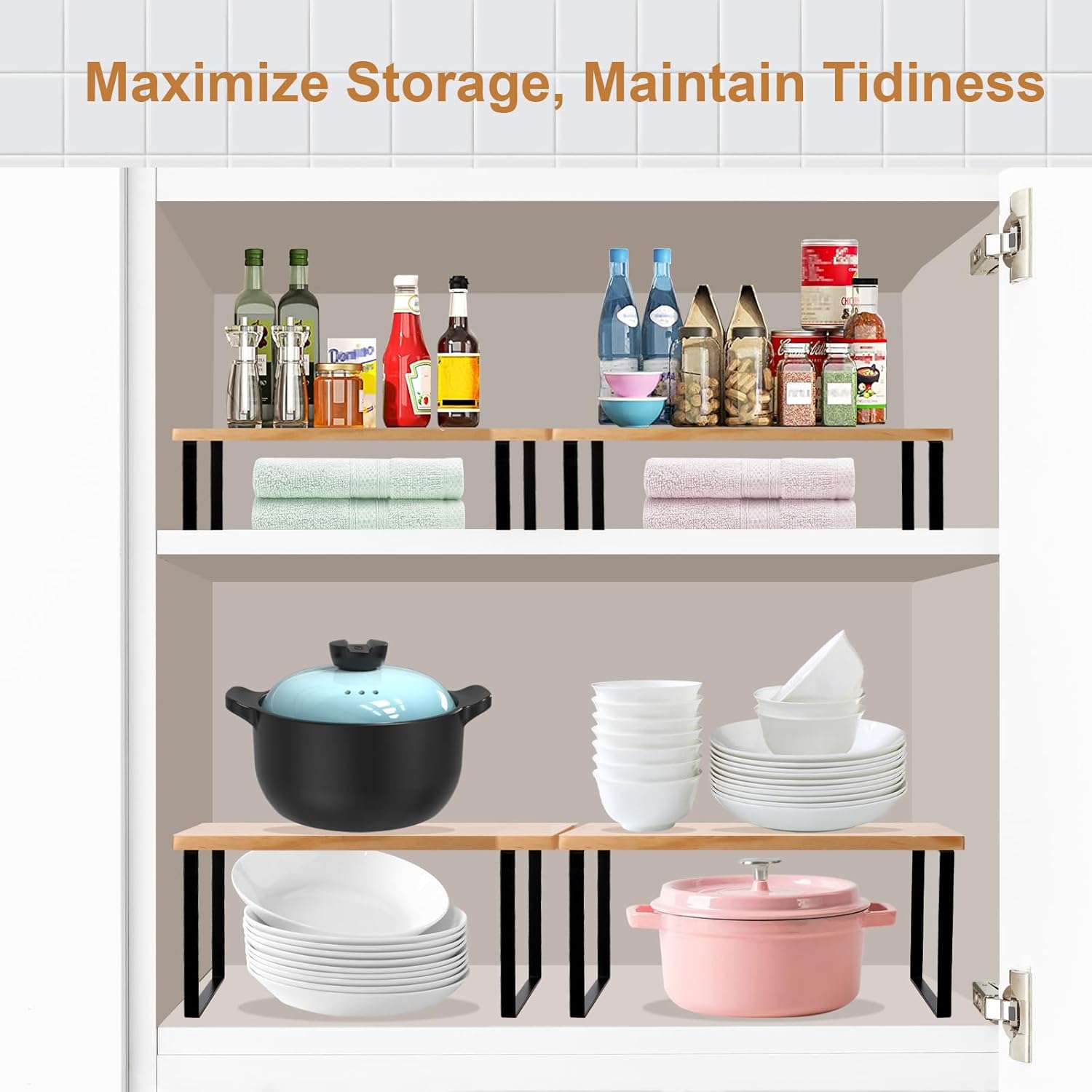 • Versatile Use: Suitable for organizing various items such as spices, canned goods, dishes, and more, this cabinet organizer shelf offers versatility to meet your storage needs in any room of your home.