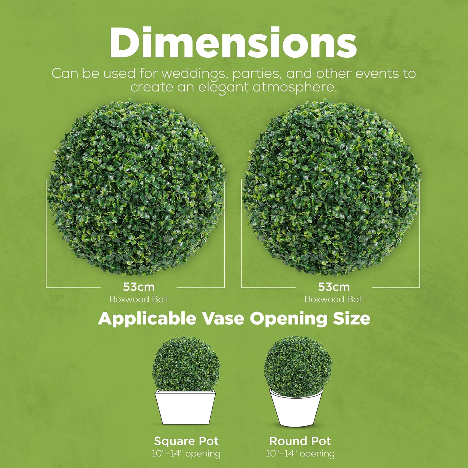 DRAY Premium 20.87" Faux Boxwood Balls – Set of 2 Artificial Topiary Spheres for Outdoor & Indoor Use – Realistic, UV-Resistant, Weatherproof Decorative Greenery – Check Measurements