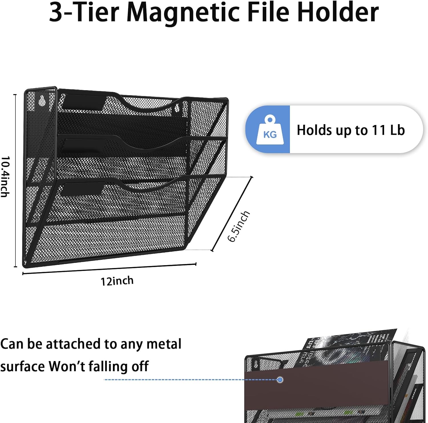 • 【3 Tier Magnetic Wall File Organizer】This 3-tier vertical pocket wall-mounted file organizer is perfect for classifying and storing documents, recipes, mail, coupons, and more. It can also be used as a refrigerator file organizer to keep your mail in check.
