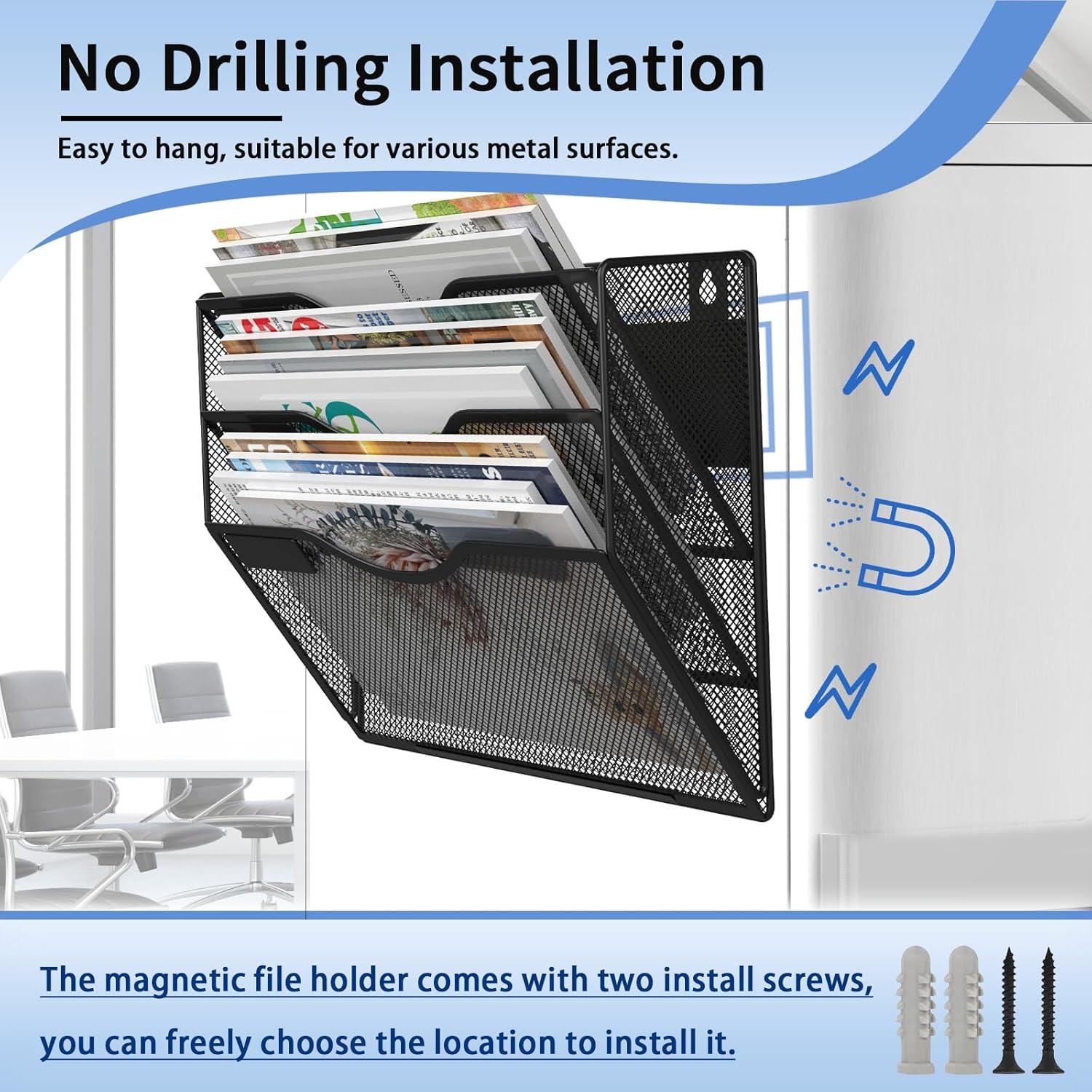• 【Durable Metal Construction】Crafted from high-quality metal with an attractive mesh wire design, this magnetic hanging file organizer features a durable powder coat finish that is resistant to oxidation and rust. Please exercise caution when removing the product from an iron surface due to its strong magnetic force.