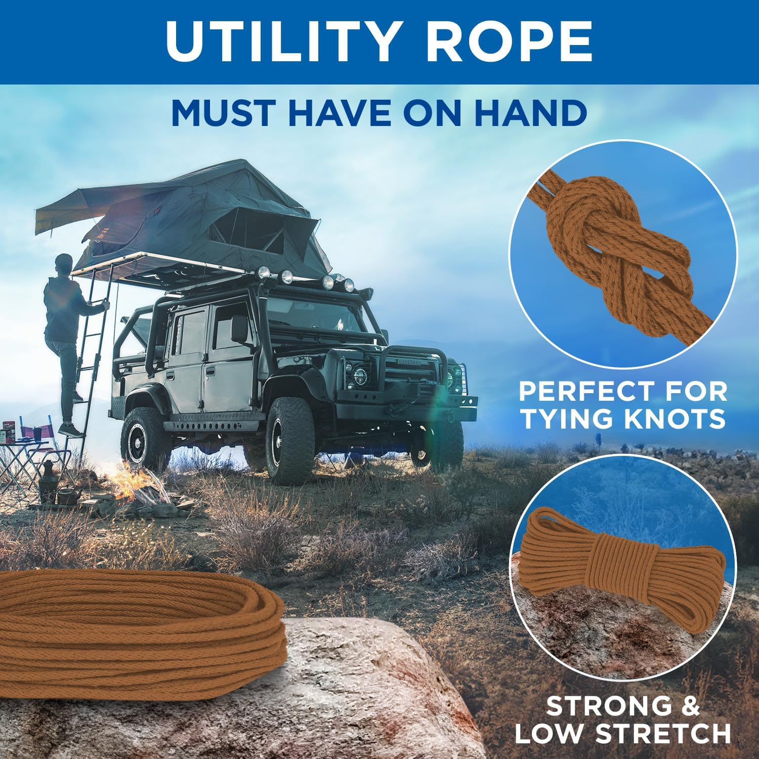 TECEUM Cotton Rope 3/16” (5 mm) – 100 FT – Strong All-Purpose Braided Rope – Natural Cotton – for Crafting, Сamping, Clothes Line, DIY, Indoor & Outdoor Use – Ochre