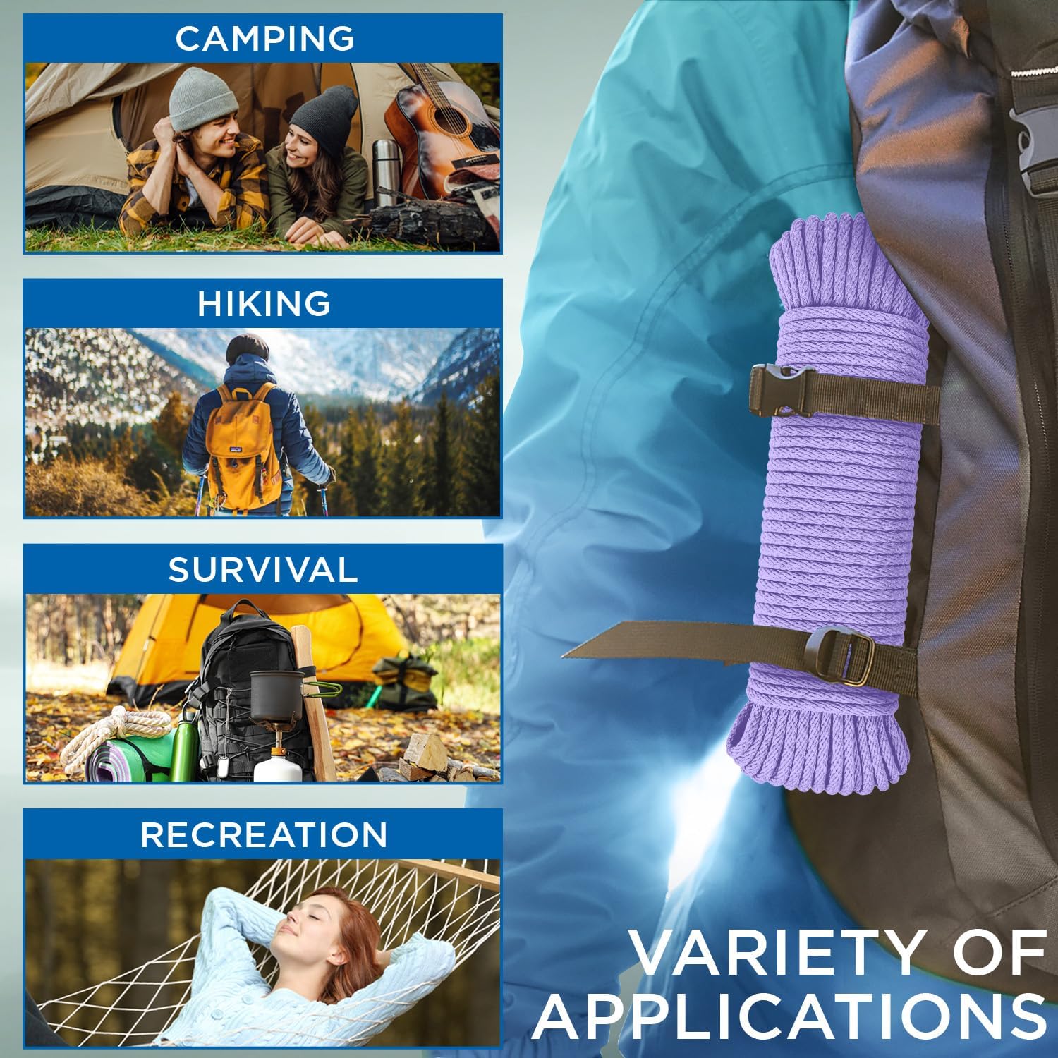 • COTTON ROPE: Color: Lavander. Length: 50 feet. Width: 3/16 inch (5 mm). Quick-drying. All-purpose. Made from natural cotton with synthetic core. * Please note: the rope is not suitable to be used for wicks.