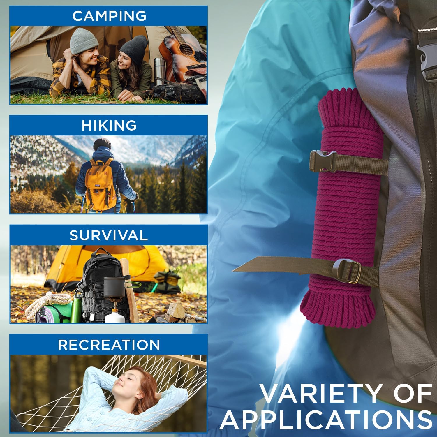 • ALL-PURPOSE: Great for all kinds of Outdoor and Indoor Applications: from camping and boating to household and general use.