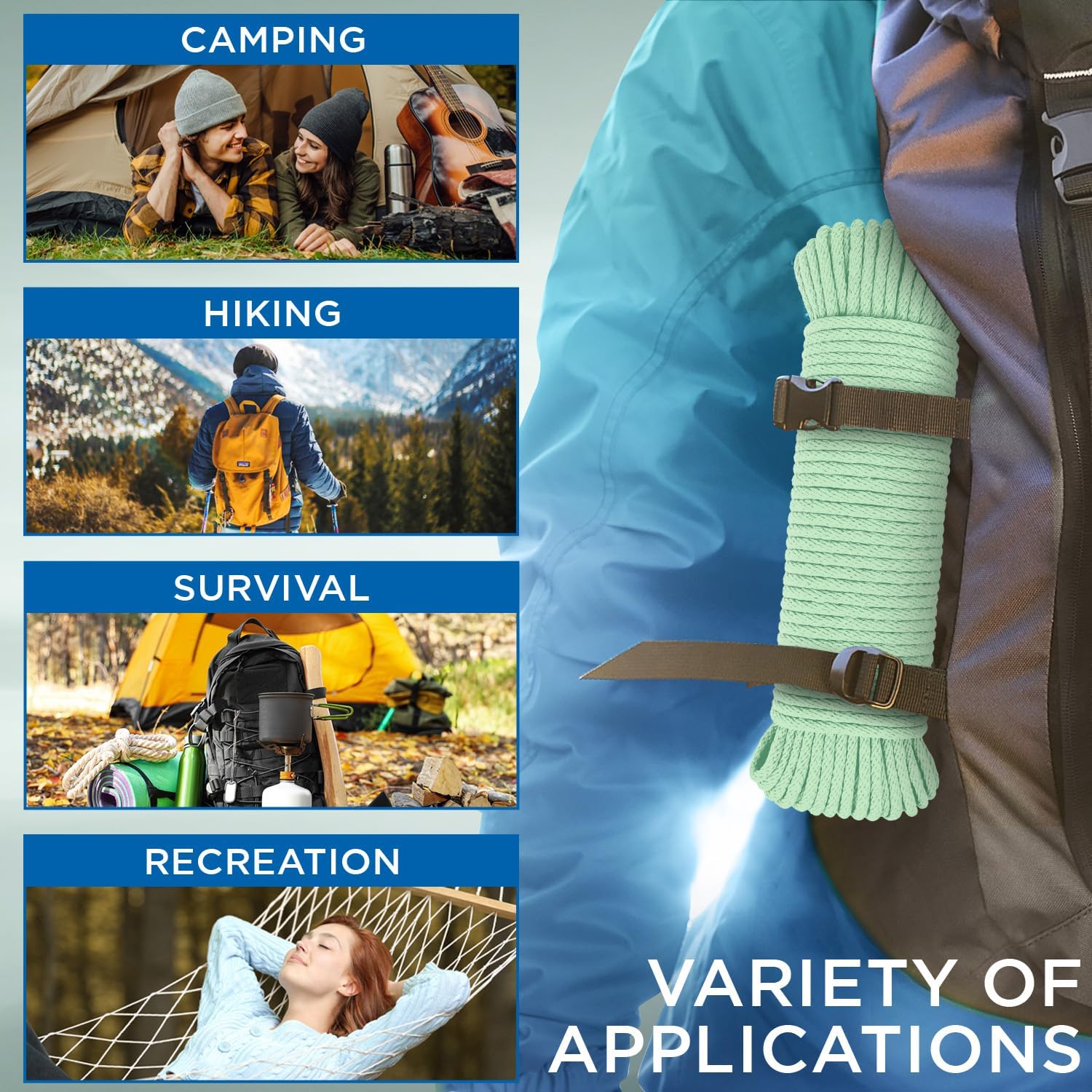 • ALL-PURPOSE: Great for all kinds of Outdoor and Indoor Applications: from camping and boating to household and general use.