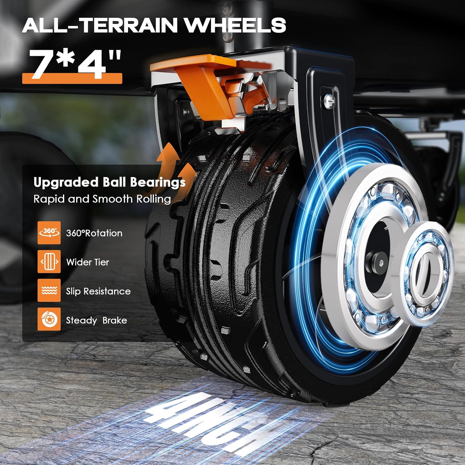 • 【Long-Lasting Efficient Transport】: Wide wheels do better on complex terrains. The sturdy wheels are made of PP+PVC, which has perfect maneuverability and higher transportation efficiency than others. It can roll over obstructions such as rocks, roots, and even curbs. The wheels have double bearings to maximize the carrying capacity and safety, which reflect its performance. Keep in mind, though, wagons don't work on soft sand.