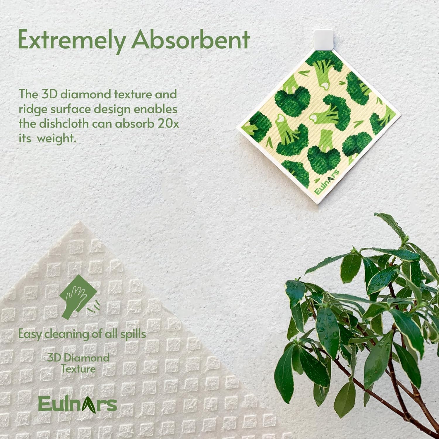 • Superior Material: Crafted from 70% cellulose (wood pulp) and 30% cotton, our reusable swedish dishcloths are durable, vegan, and chemical-free. They are no lint shed and won't scratch surfaces. These swedish towels resist deformation, wear, and odor, while quick-drying and maintaining a firm, stain-resistant texture when dry. A reliable choice for long-term use