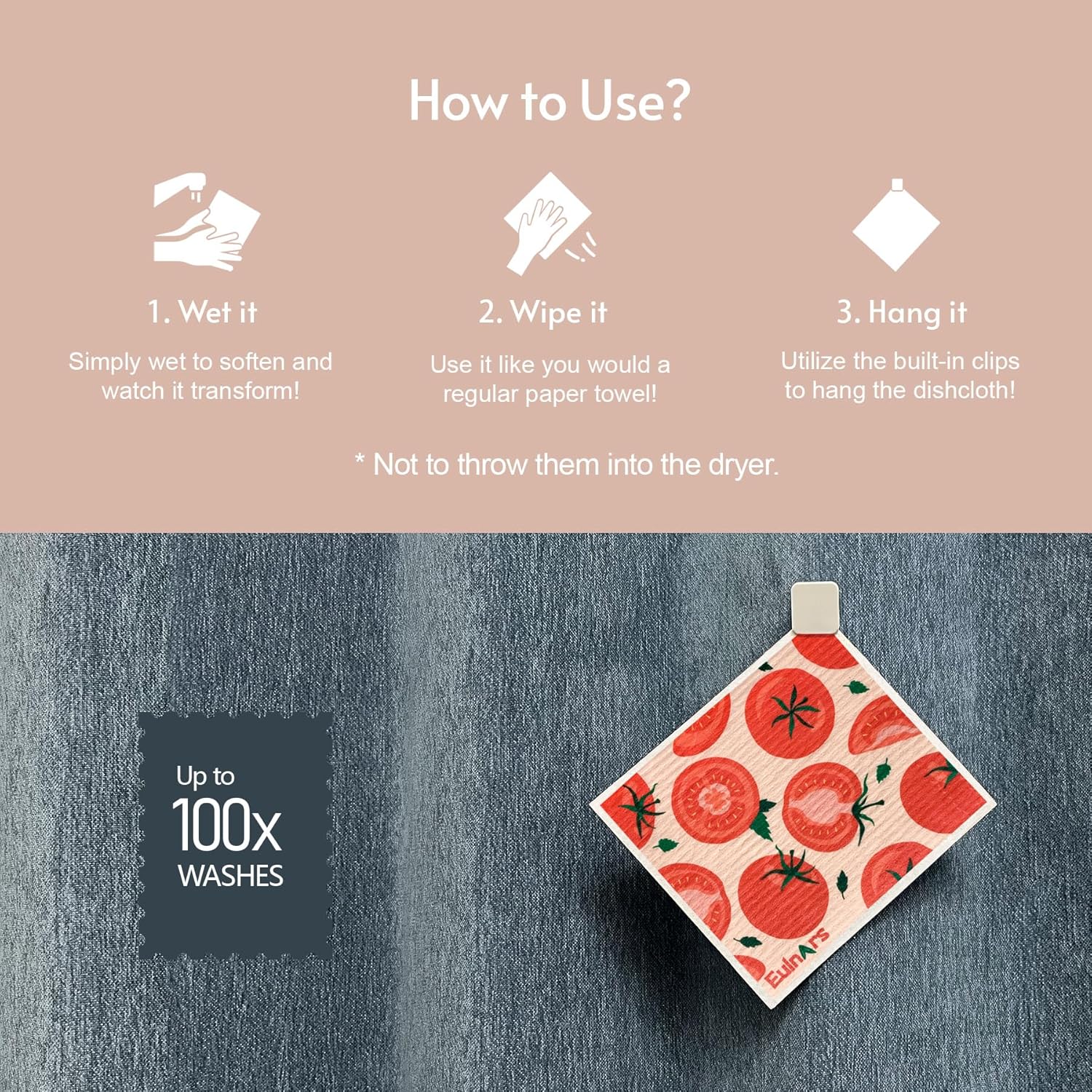 • Washable and Resuable: Tested to be reusable up to 200 times, our swedish dish cloths for washing dishes can replace up to 17 rolls of paper towels. Affordable, durable, and easy to care for, they offer a long-lasting alternative to disposable paper towels