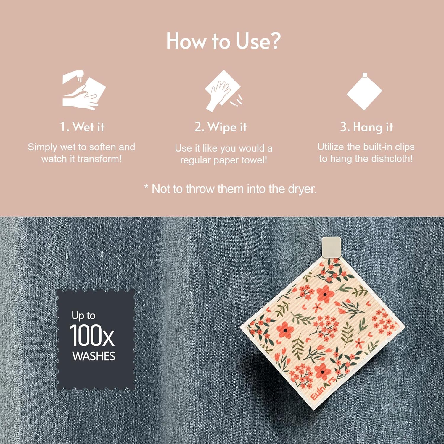 • Washable and Resuable: Tested to be reusable up to 200 times, our swedish dish rags for washing dishes can replace up to 17 rolls of paper towels. Affordable, durable, and easy to care for, they offer a long-lasting alternative to disposable paper towels