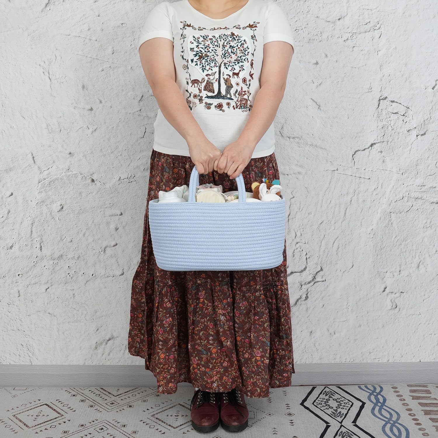 Diaper Caddy Organizer Cotton Rope Baby Basket Nursery Storage and Portable Tote Bag for Car Ideal Baby Shower Gifts and Registry Must-Have for Newborn Essentials blue