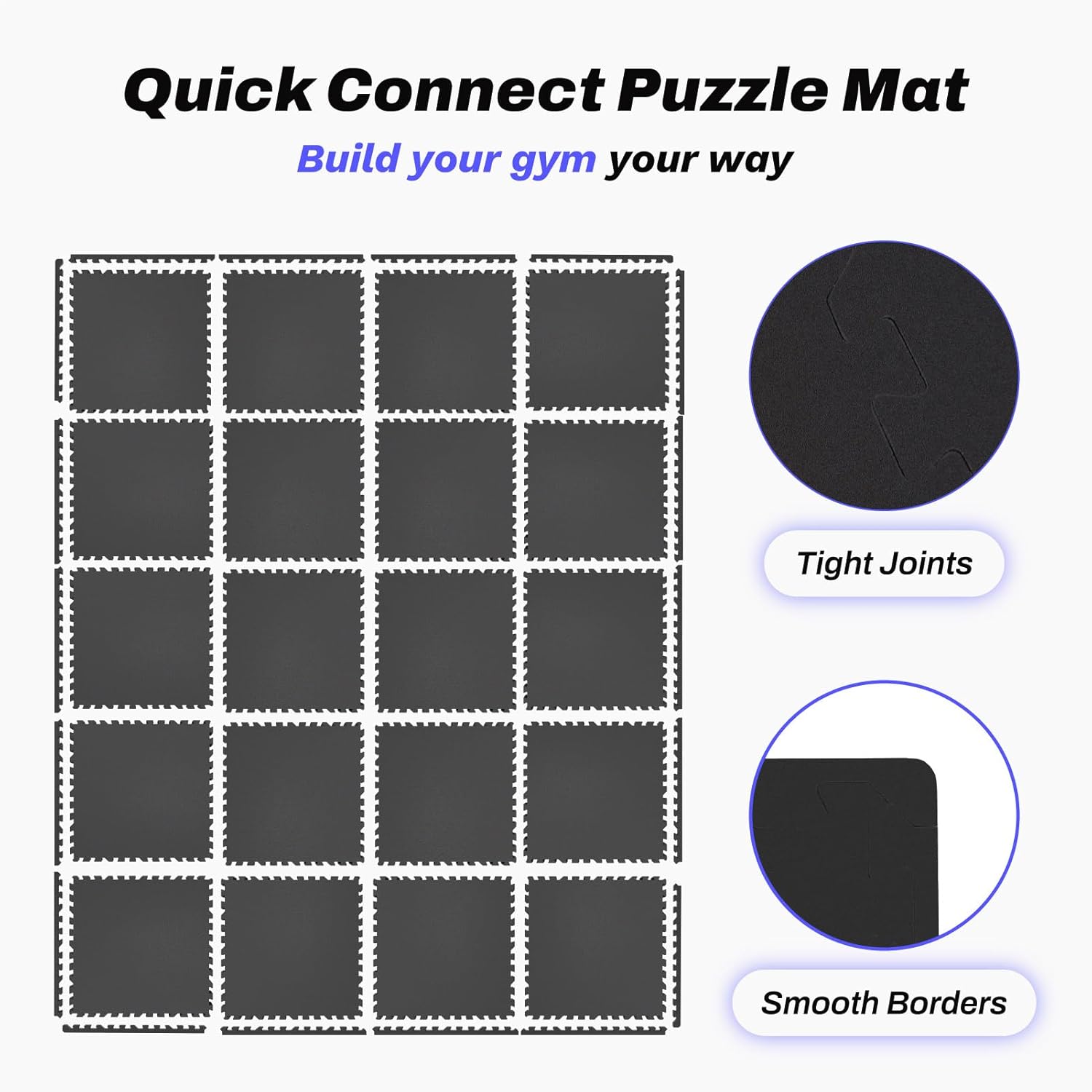 • [Easy to Assemble and Detach]: 24 tiles (24" x 24" x 0.56" each), covers 96 sq ft (8 × 12 ft). Upgraded larger interlocking locks provide a secure fit, preventing any separation during use, ensuring you can work out without concerns of shifting. Simple assembly and detachment make it effortless to set up your home gym.