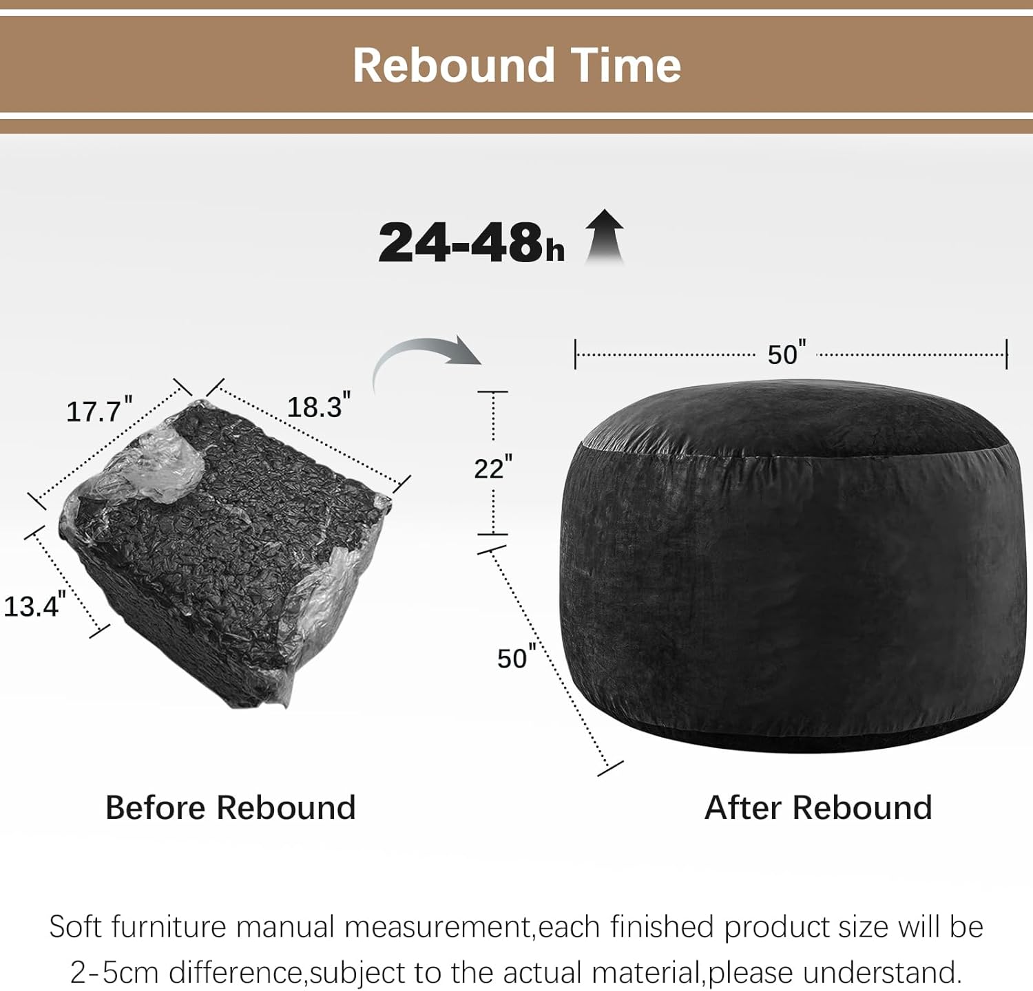 • BEAN BAG FILLER: Stuffed block-shaped memory sponge, Padding can be removed and added depending on desired comfort and ease of transport. Different from foam, the high-rebound sponge is still comfortable and does not sag even after sitting for a long time. Due to its compression upon arrival, it may be necessary to wait for the sponge to become fluffy and fully rebound.