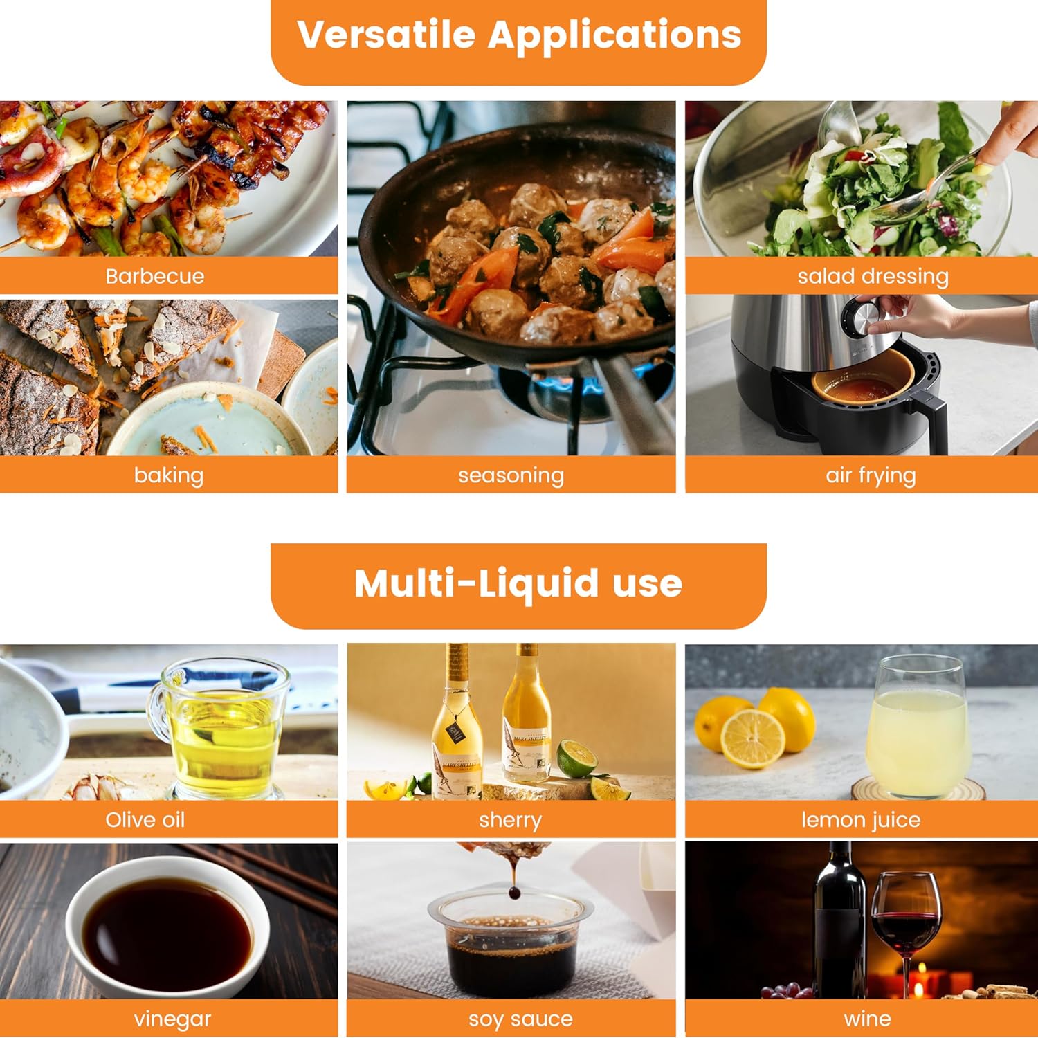 • Multi-Purpose: Perfect for oils, vinegar, lemon juice, sherry, and more. Great for BBQ, baking, seasoning, salads, and air frying.