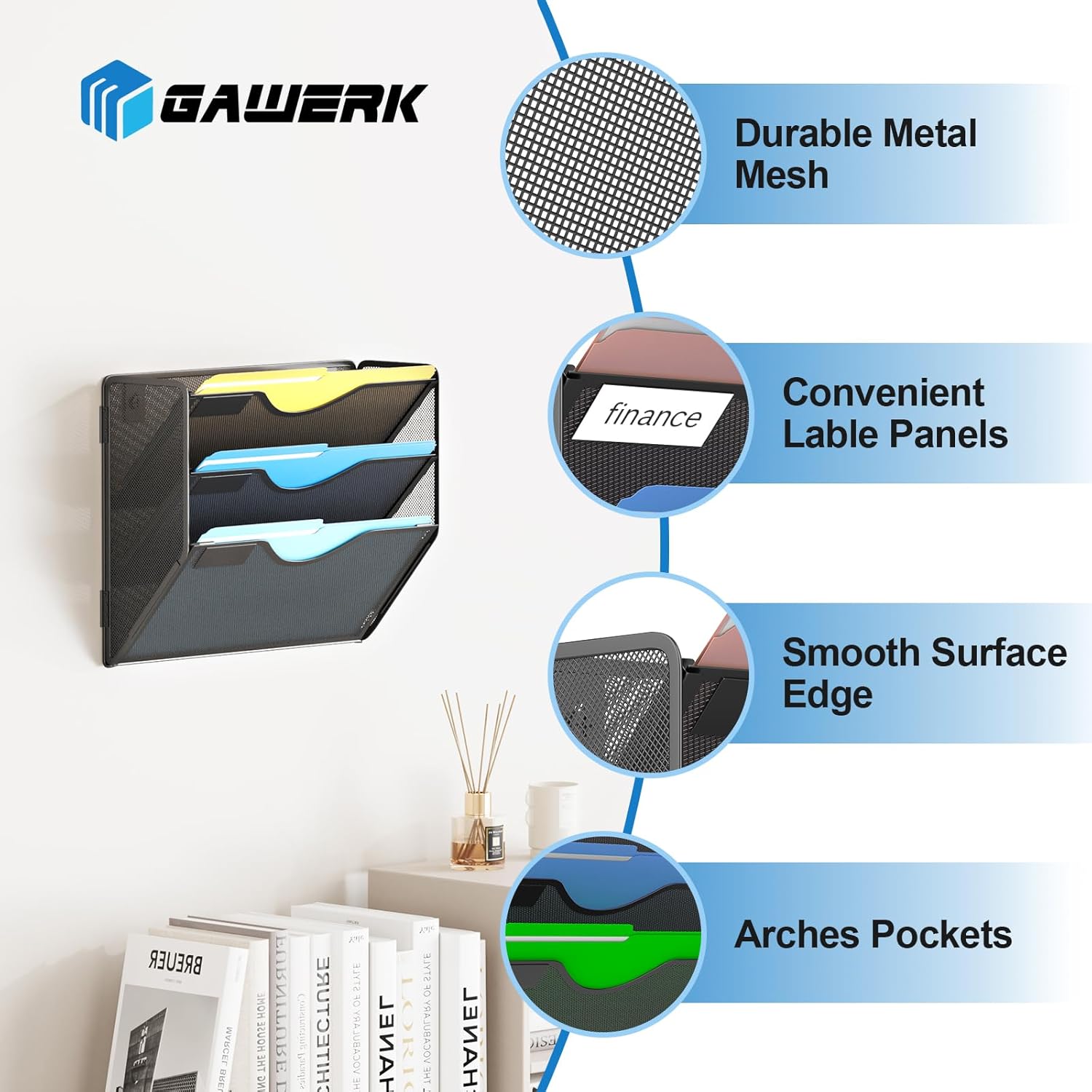 • ✏️ Easy Access to Files: The wall mounted file organizer features an arched design for easy access to the contents of your stored files.