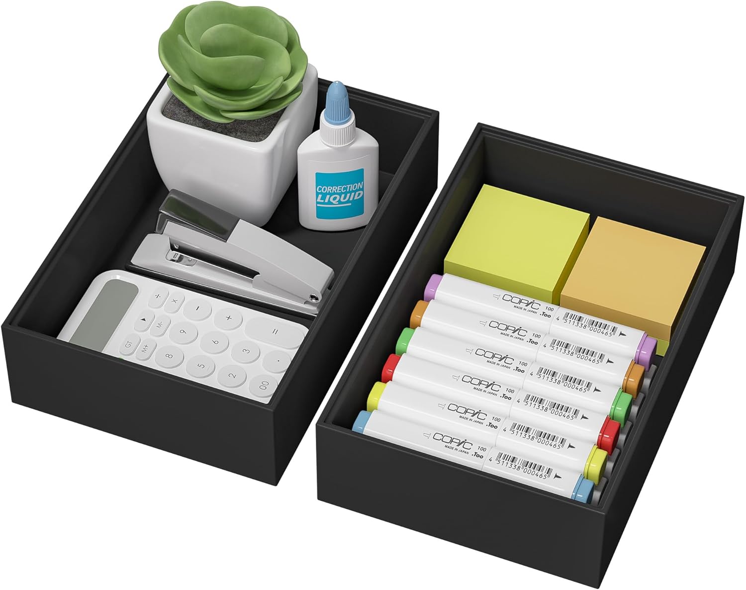 • 2 PCS Office Desk Organizer - Our desk drawer organizer tray for small office desk accessories brings comfort to find what you need and helps you to increase productivity. This office drawer organizer set offers ample space for storing most office desk stationery, such as pens, erasers, highlighters, notes, staplers, pencils, scissors, tapes, clips, etc