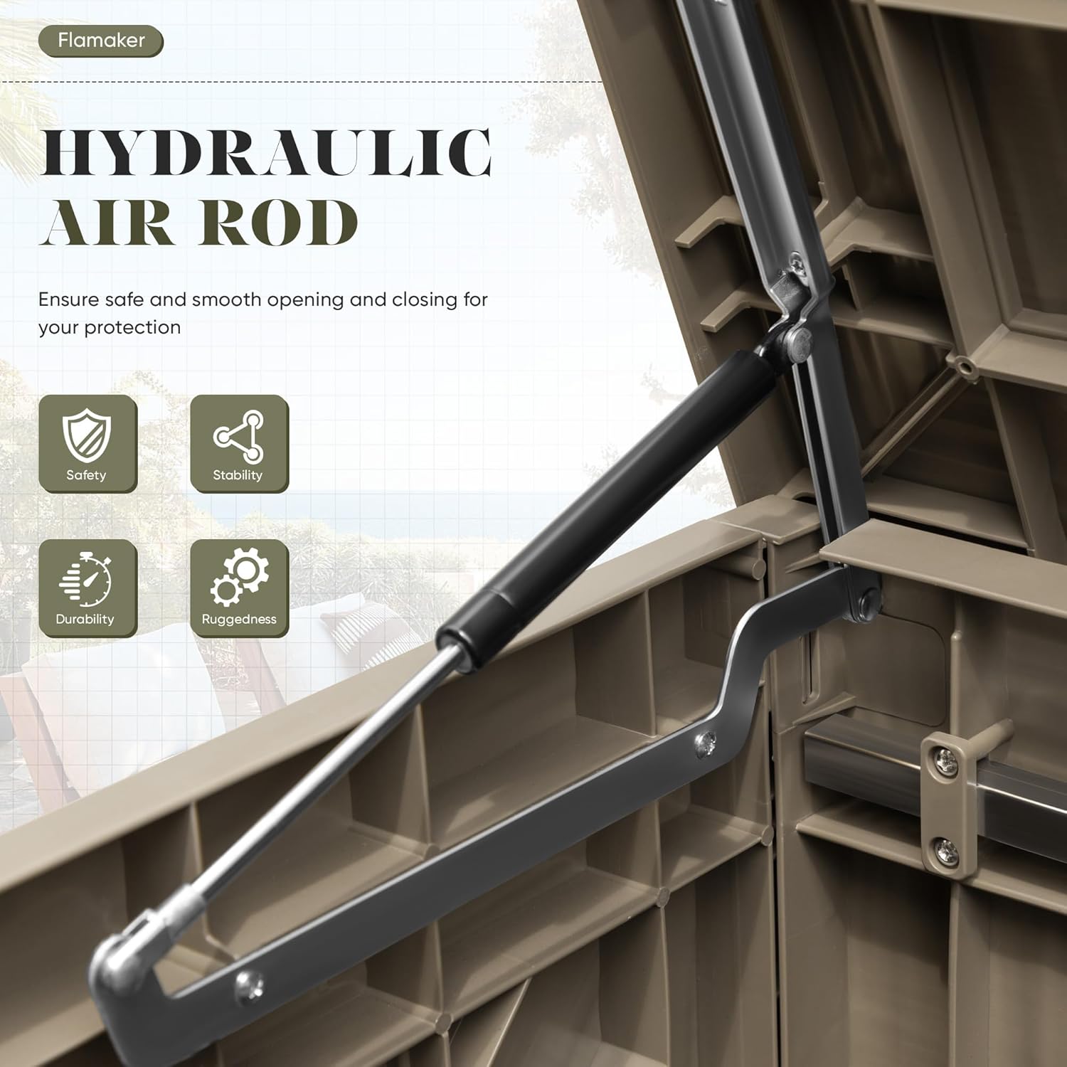 • [As a Seat] 53"*25"*25" Outdoor storage box large size, not only the storage capacity is guaranteed, but the storage cover can be used as a seat, which can be used by up to 2 people