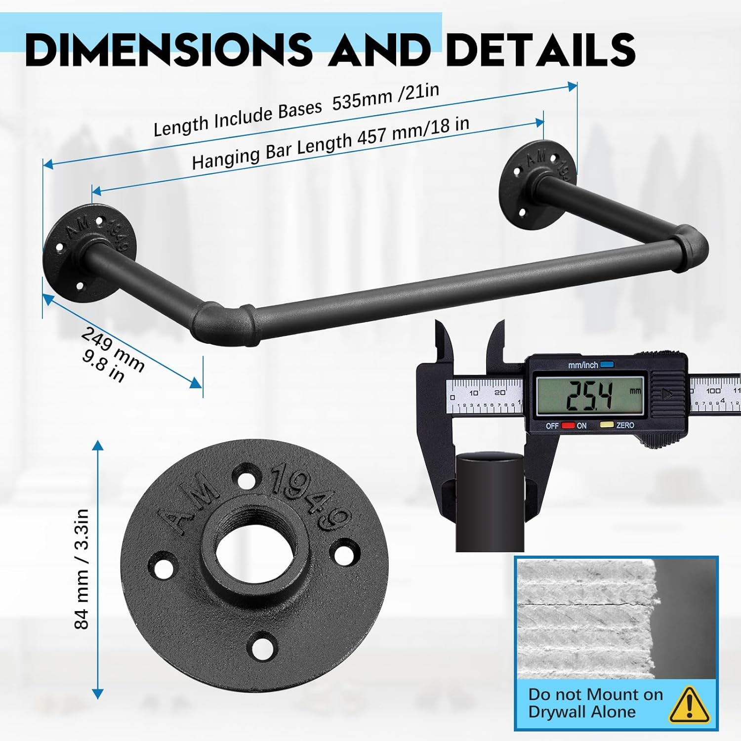 • 【Durable And Sturdy】The clothing rack is made of a 1" dia iron pipes, makes it durable. Also more importantly can holds up to 100 lb when mounted to a solid wall