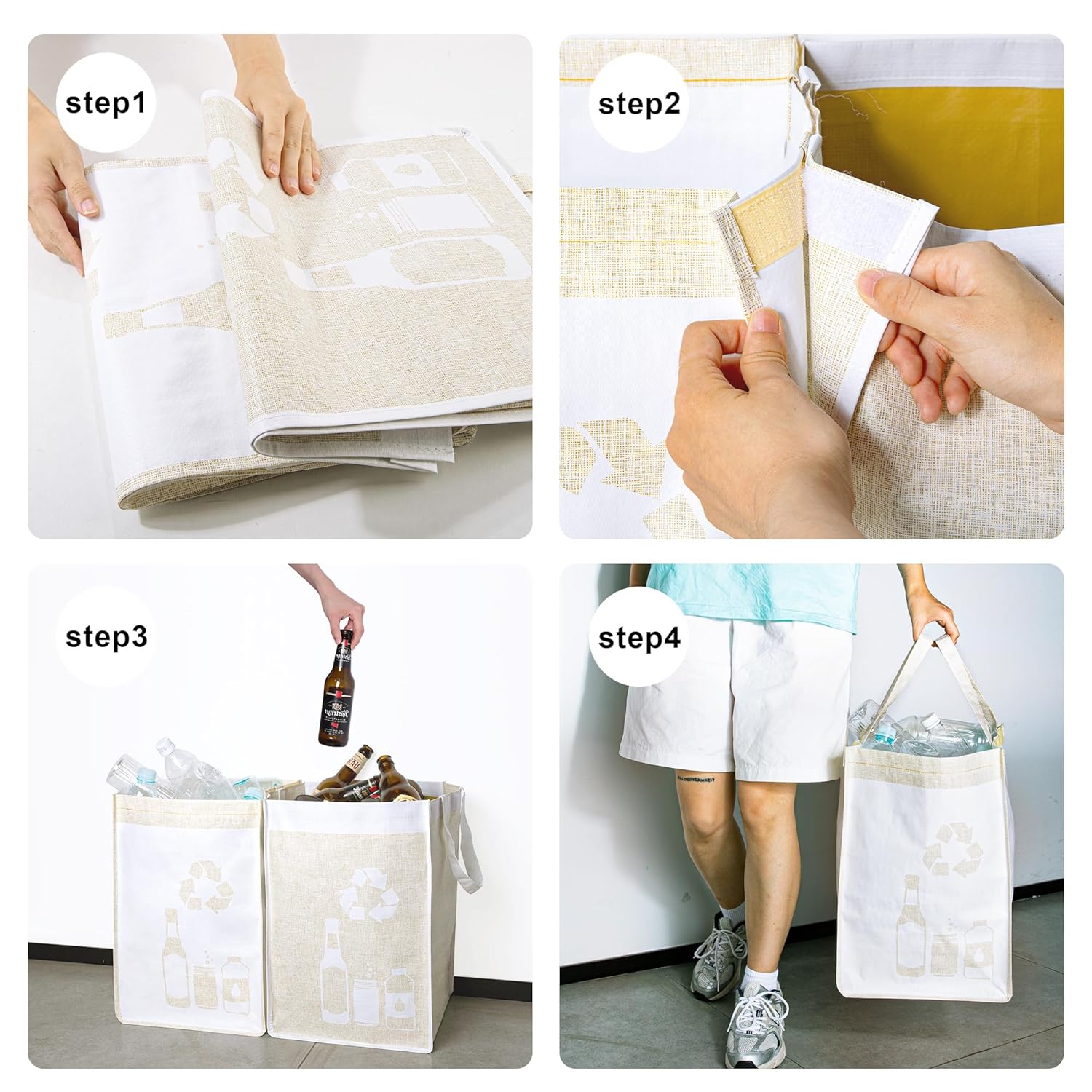 • Premium Material: Our recycling bins are made of high quality polypropylene, which is waterproof, easy to clean and sturdy for a long service life! Weighing capacity is enhanced by double-stitched carrying handles, making the recycle bins for kitchen bag more easy to use