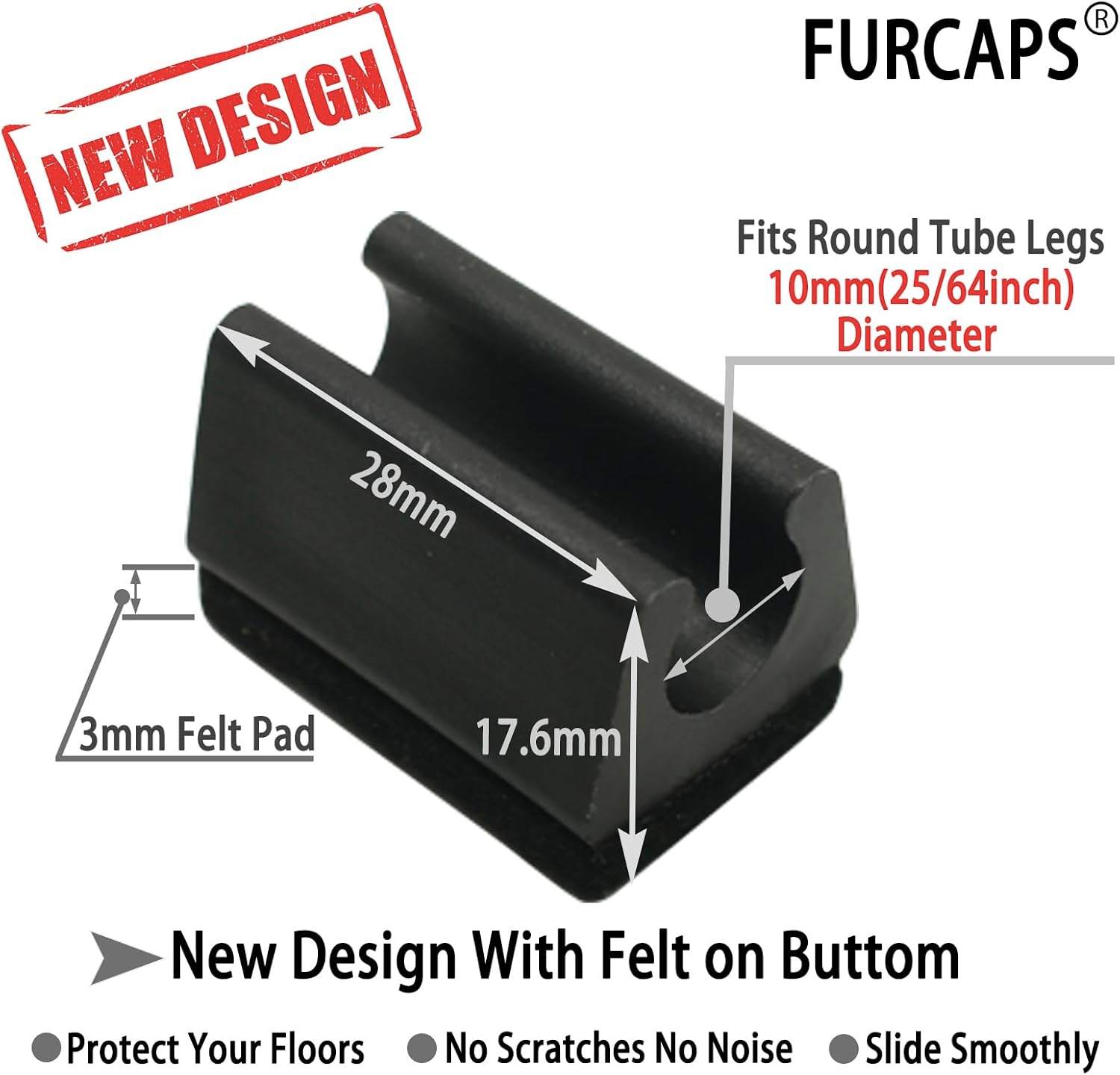 • Fit to Metal Tubular Legs: FURCAPS plastic chair foot u shaped floor glides fit round tube furniture legs.MEASURE leg size before purchase to save time! Recommended Size:Tubular Legs Diameter 10mm(25/64inch).Please watch video for how to measure chair leg and slect correct size