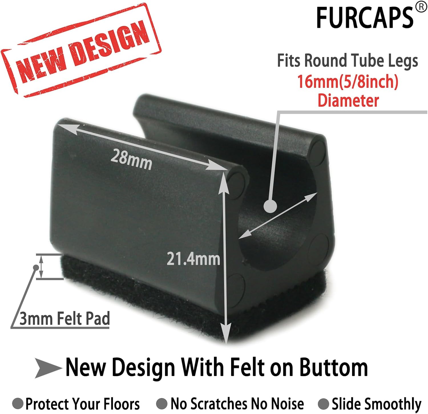 • Fit to Metal Tubular Legs: FURCAPS plastic chair foot u shaped floor glides fit round tube furniture legs.MEASURE leg size before purchase to save time! Recommended Size:Tubular Legs Diameter 16mm(5/8inch).Please watch video for how to measure chair leg and slect correct size