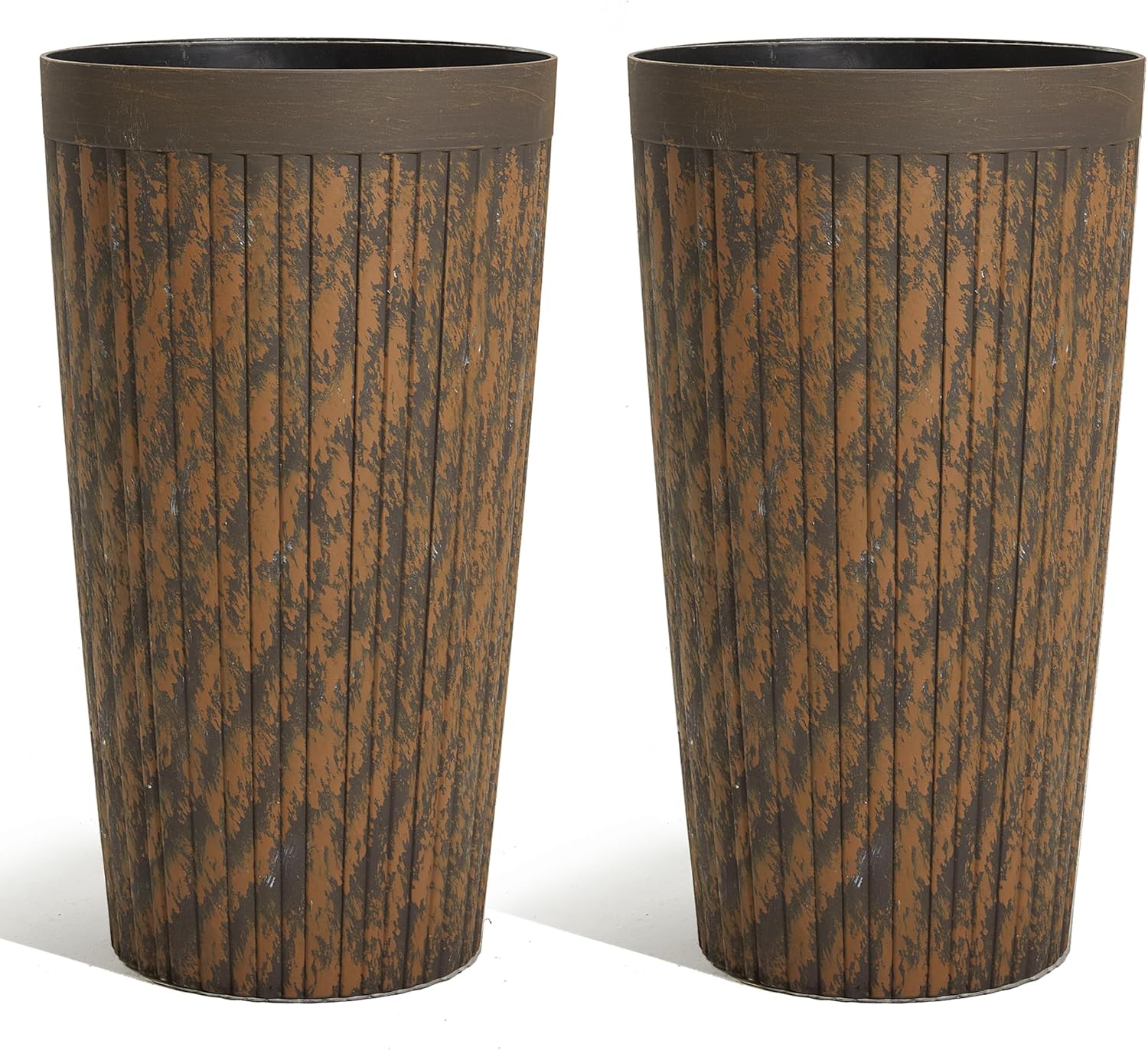 Worth Garden 22.5" H. Plastic Planters - Set of 2 Vintage Brown Tall Conical Plant Pots for Indoor Outdoor Use - Decorative Lightweight Flower Pots for Front Porch, Patio, Deck - 12.5" Dia x 22.5" H