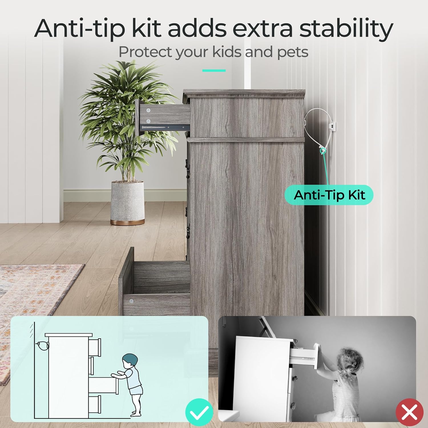 • Safety First: Equipped with a wall anchor kit to prevent tip-over incidents, this dresser for closet prioritizes safety. Smooth metal runners with safety stops ensure drawers stay securely in place. Assembly instructions and hardware are included for easy setup.