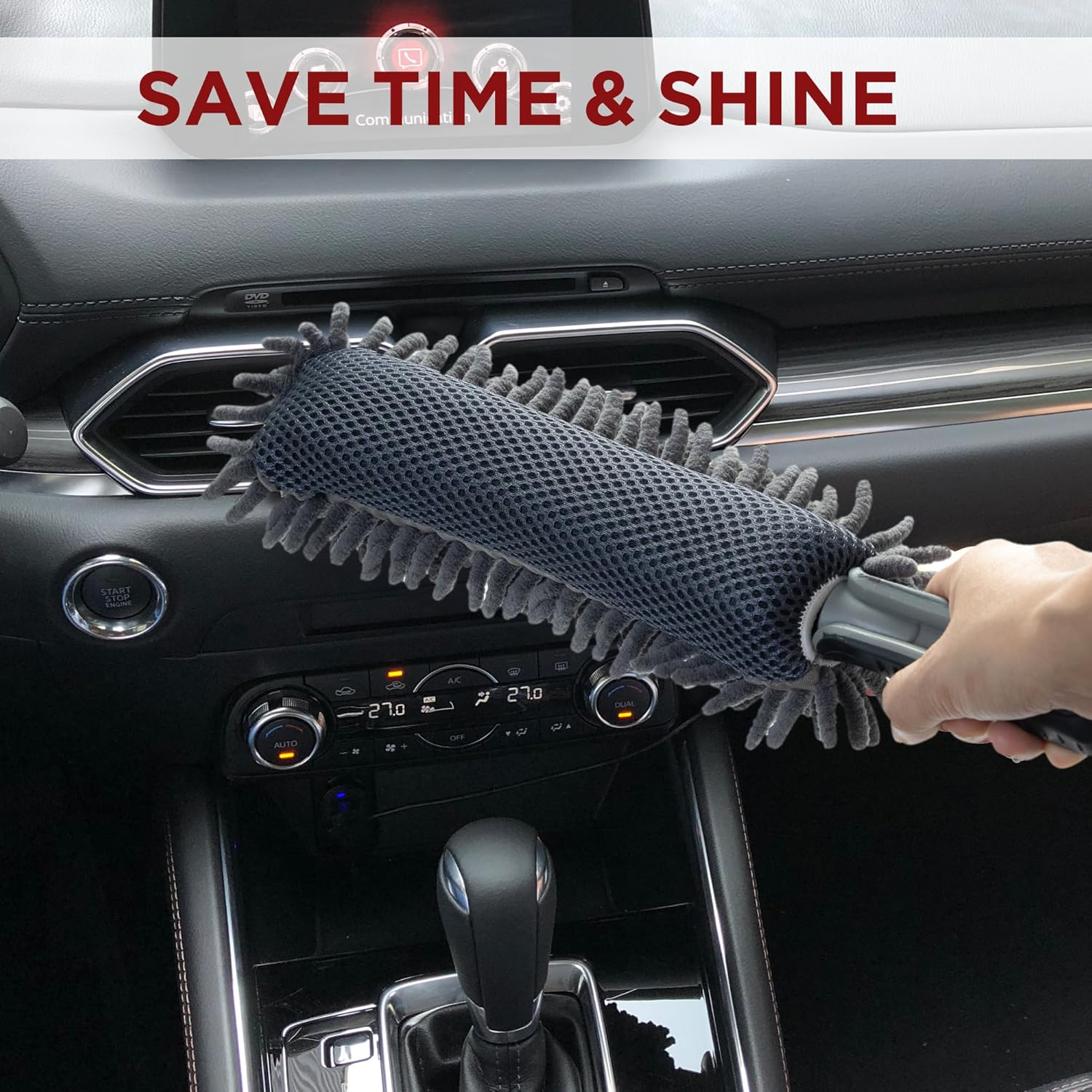 • PREMIUM SCRATCH-FREE MICROFIBER: Crafted from ultra-soft, high-density microfiber, this duster safely lifts and traps particles without scratching paint, dashboards, or delicate electronics. Gentle yet effective cleaning for all your vehicle's interior surfaces.