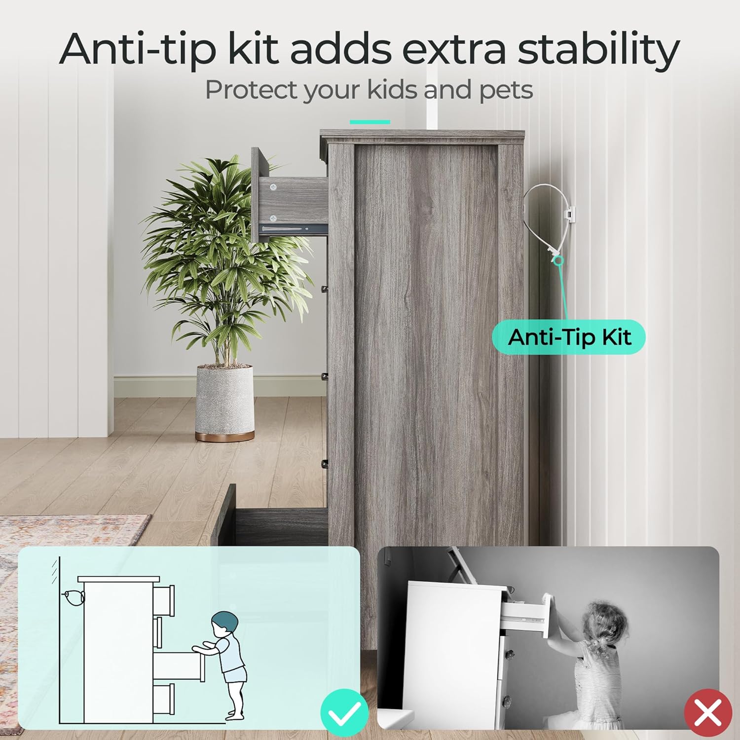 • Eco-Friendly Wood Construction: Fashioned with eco-friendly manufactured wood, this grey dresser for the bedroom boasts a clean and sleek design. Its waterproof seal ensures durability and safety, making it a reliable dresser organizer for any space.