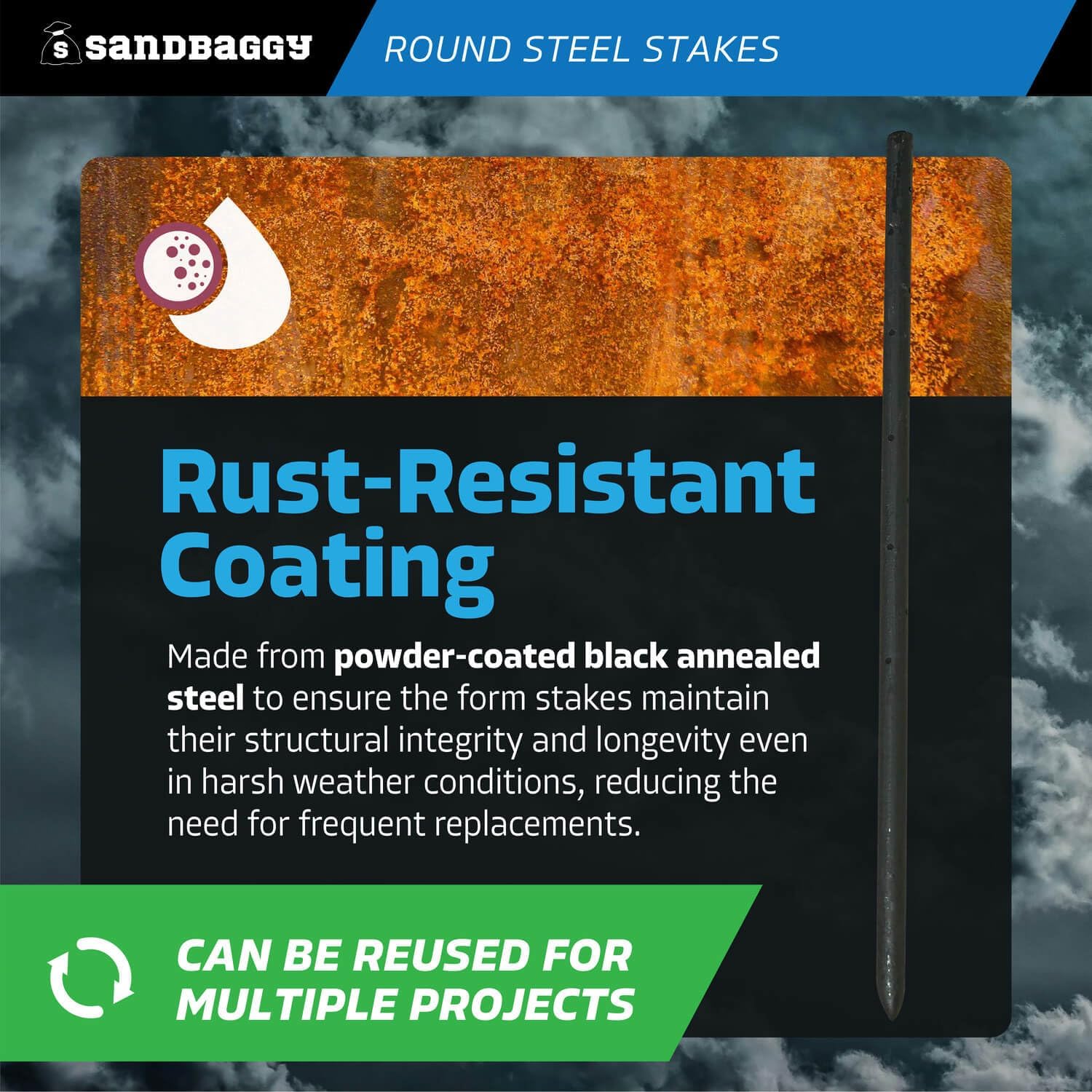 • RUST RESISTANT COATING: Made from powder-coated black annealed steel to ensure the form stakes maintain their structural integrity and longevity even in harsh weather conditions, reducing the need for frequent replacements.