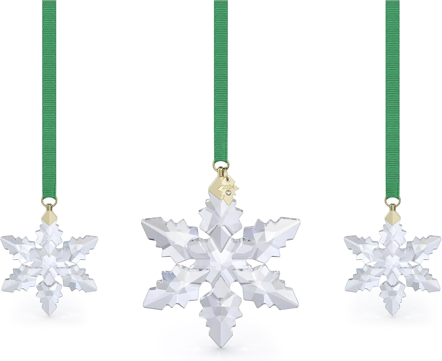• The set includes two smaller ornaments and one large snowflake, which additionally features a tag engraved with “2024