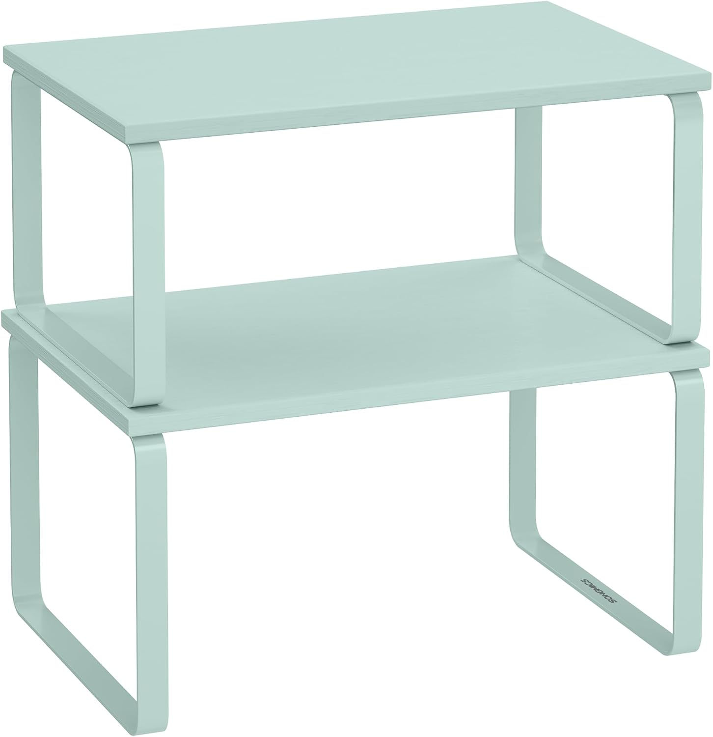 SONGMICS Cabinet Organizer Shelf, Set of 2 Kitchen Counter Shelves, Kitchen Storage, Spice Rack, Stackable, Expandable, Metal and Engineered Wood, Moonlight Green UKCS002C01