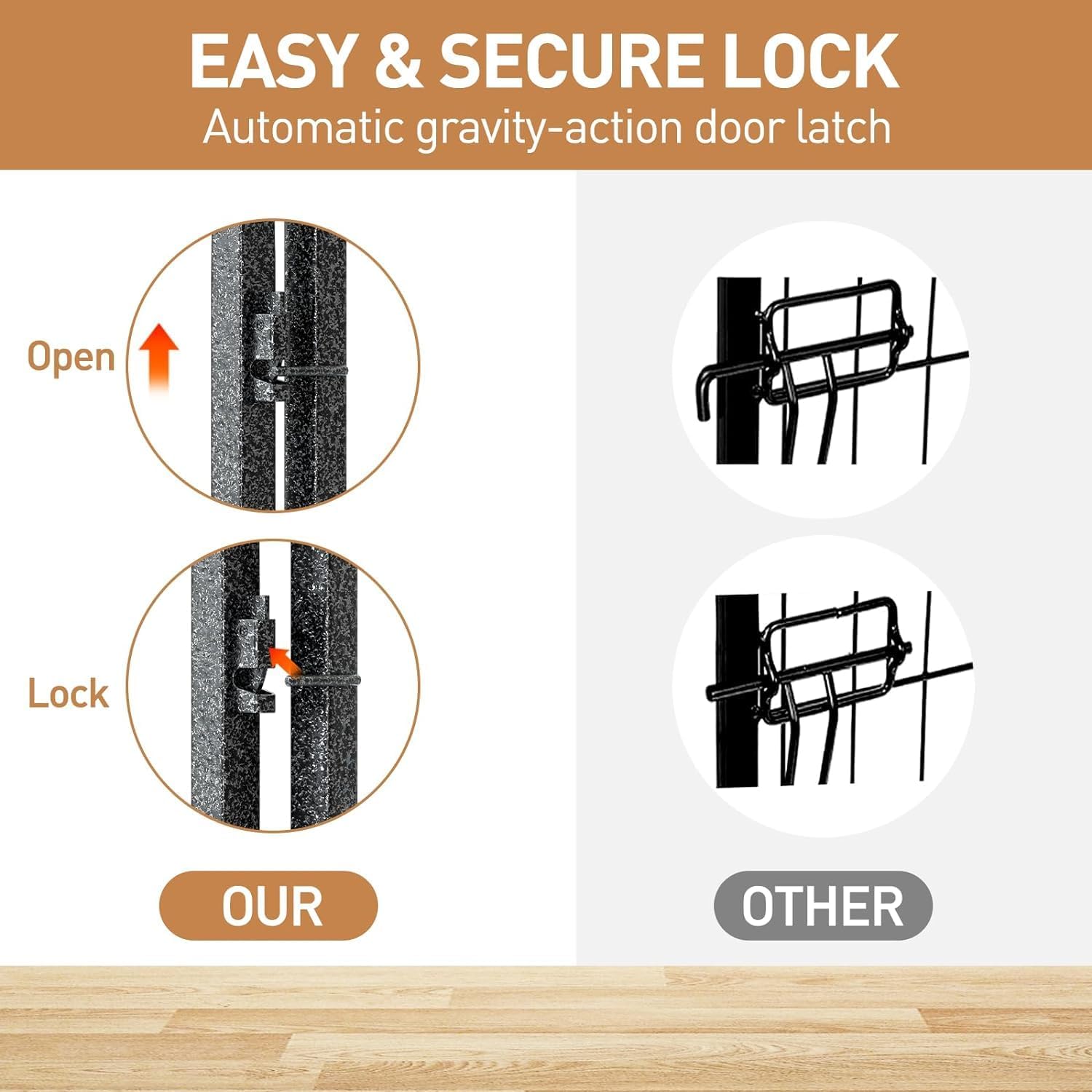 • 【Safety by Design】: The upgraded design of the ground stakes with rounded tops provides protection for your pet's paws, ensuring more robust stability even when the pet is close. The automatic gravity-locking mechanism ensures smooth operation of the door, minimizing the risk of pets unlocking it themselves. All these safety features allow you to truly trust that your pet can move around safely within the enclosure