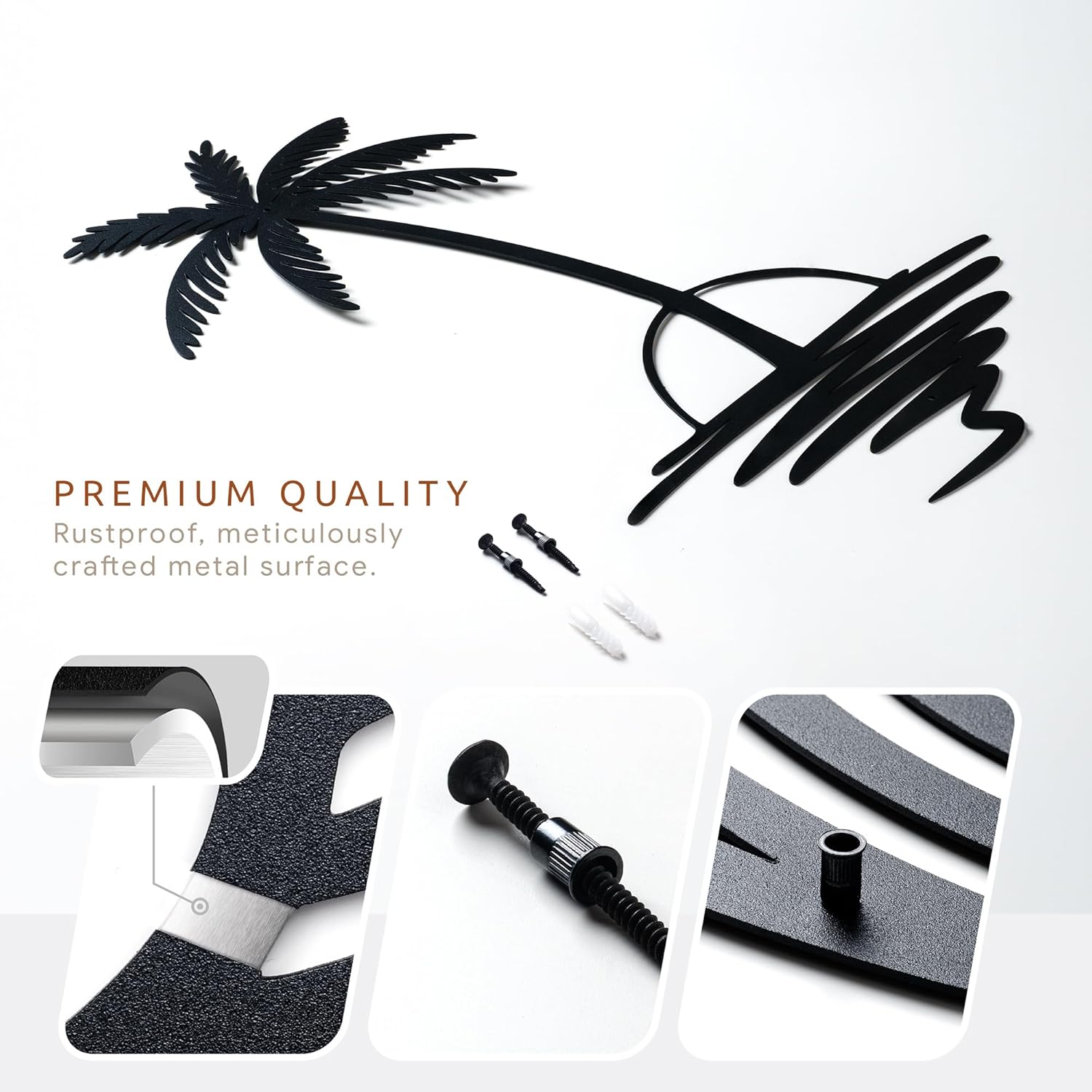 • HIGH-QUALITY METAL DESIGN WITH SUNSET PALM TREE: Expertly crafted from durable and long-lasting high-quality metal, this modern wall art showcases a captivating tropical scene with a sunset and palm tree. Perfect for enhancing the aesthetic appeal of both indoor and outdoor spaces, it adds a touch of exotic elegance and vibrant charm to your home decor. The intricate details and vivid colors of the sunset and palm tree create a relaxing and inviting atmosphere, making it an ideal addition to any living room, bedroom, garden, or patio.