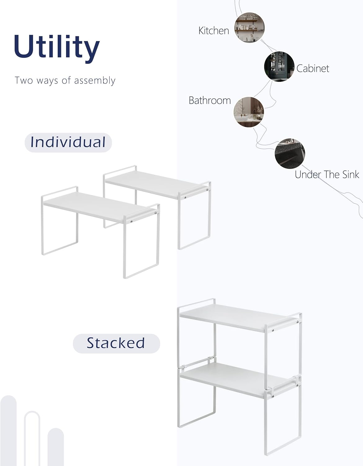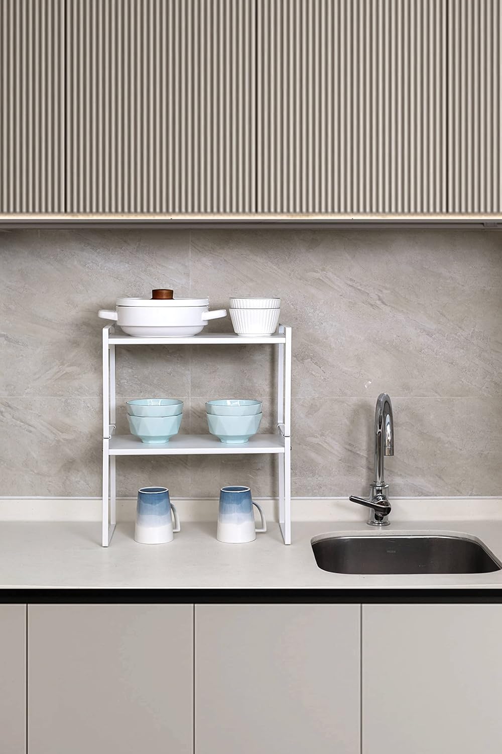 • CHARACTER DESIGN: This cabinet shelf can create plenty of space for your household items such as cups, pots, bottles, bowls, cookware, or canned foods without dominating space in your cabinet. This stylish cabinet shelf fits neatly on the countertop to keep your essentials organized and easily accessible.