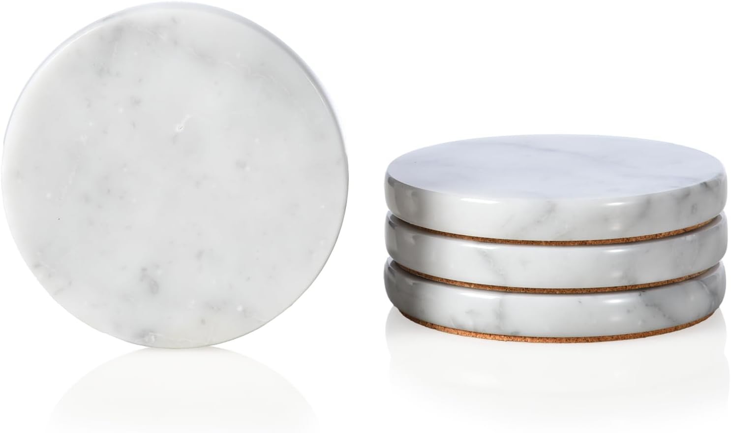 • Simple and Practical: Including 4 pieces of natural carrara white stoneware coasters (size: Φ4'' x H0.4'') , the drink accessory set is a good size for all kinds of glasses, teacups and mugs, which can hold hot and cold drinks without worry. Classic round design, practical and stylish, perfect for kitchen, living room, bar, hotel, restaurant, party and so on