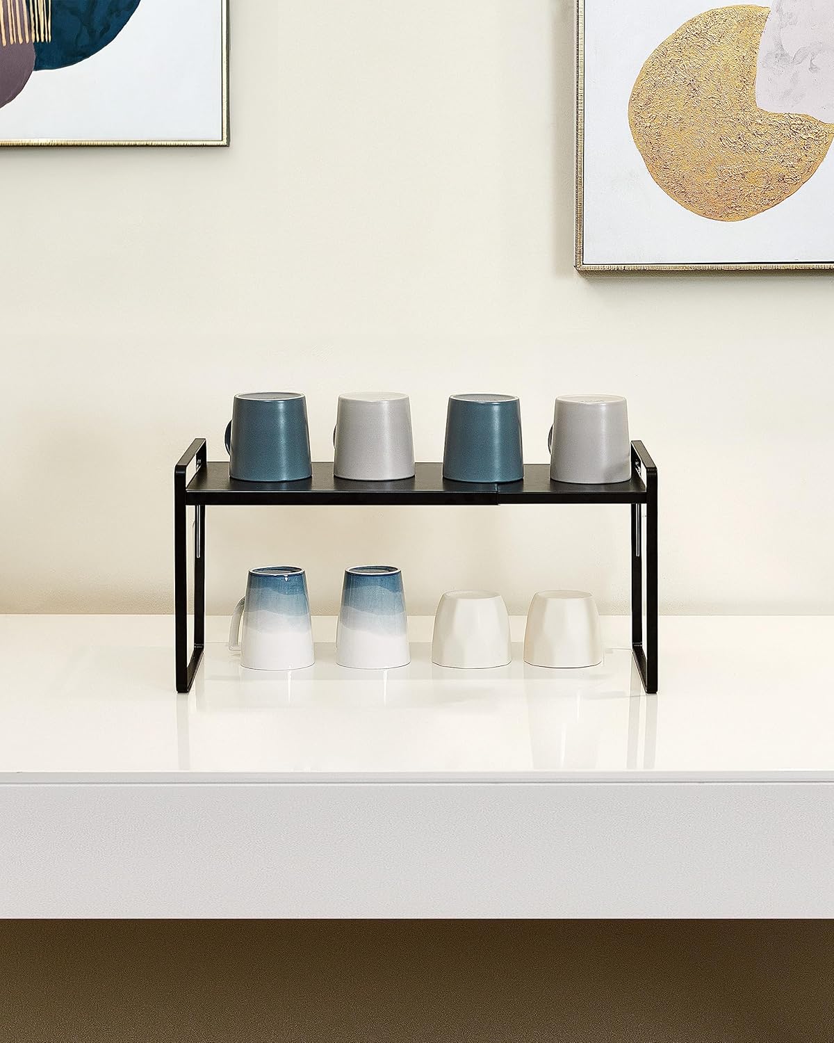 • VERSATILE APPLICATION: This cabinet rack is not only highly functional but also visually appealing. It can be used in various settings including the kitchen, bathroom, cabinet, cupboard, pantry, or on different surfaces and tabletops. It offers storage space for your home, office, or workspace, while adding an attractive landscape to your desktop, making your space tidy, clean, and beautiful.