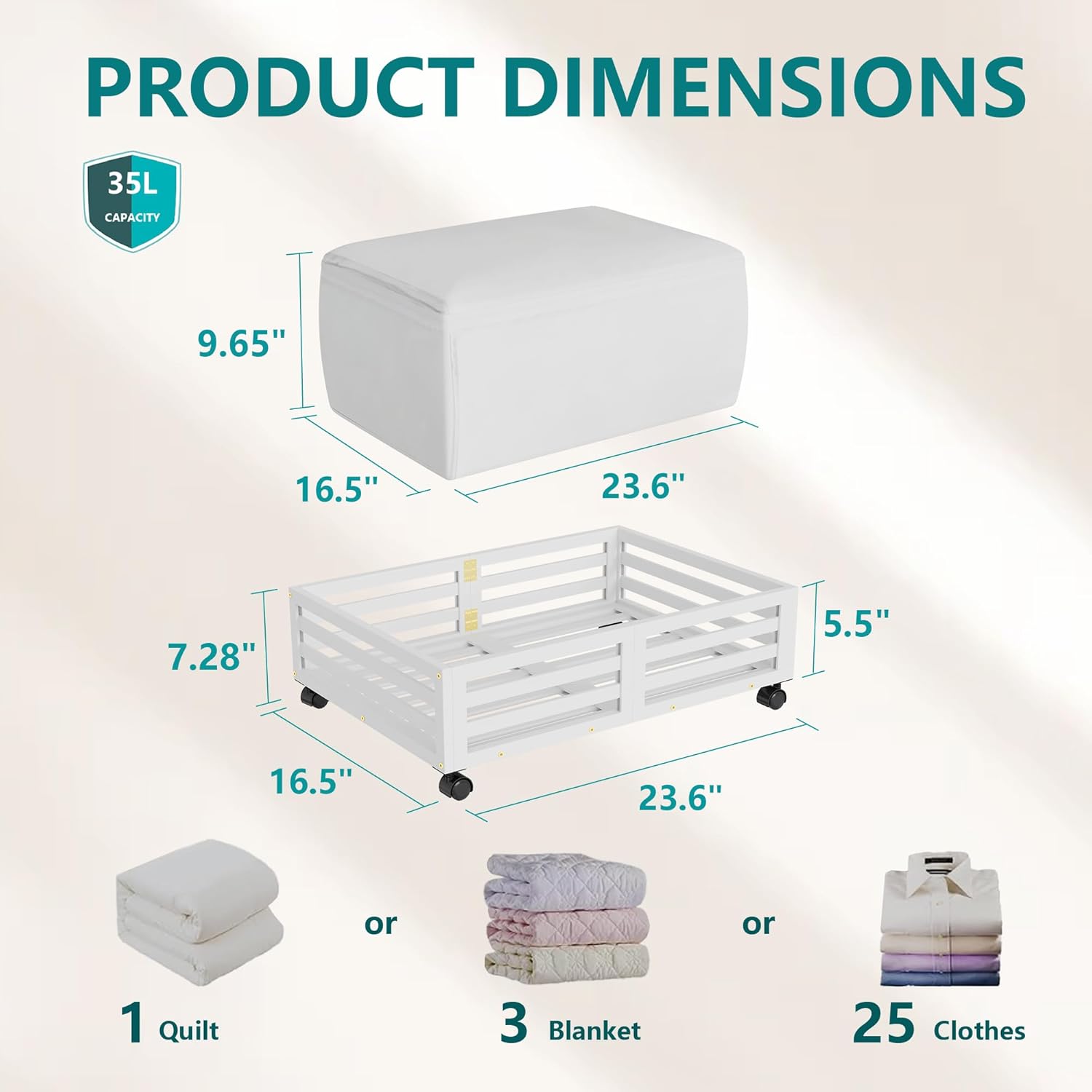 • ๐Ÿ‘[Sturdy and Durable] Our under bed storage with wheels is crafted from premium wood bamboo, boasting 4 rotating wheels and a capacity of 120lbs. This 'under bed storage' solution includes non-woven bags for efficient organization of clothes, books, shoes, and toys.
