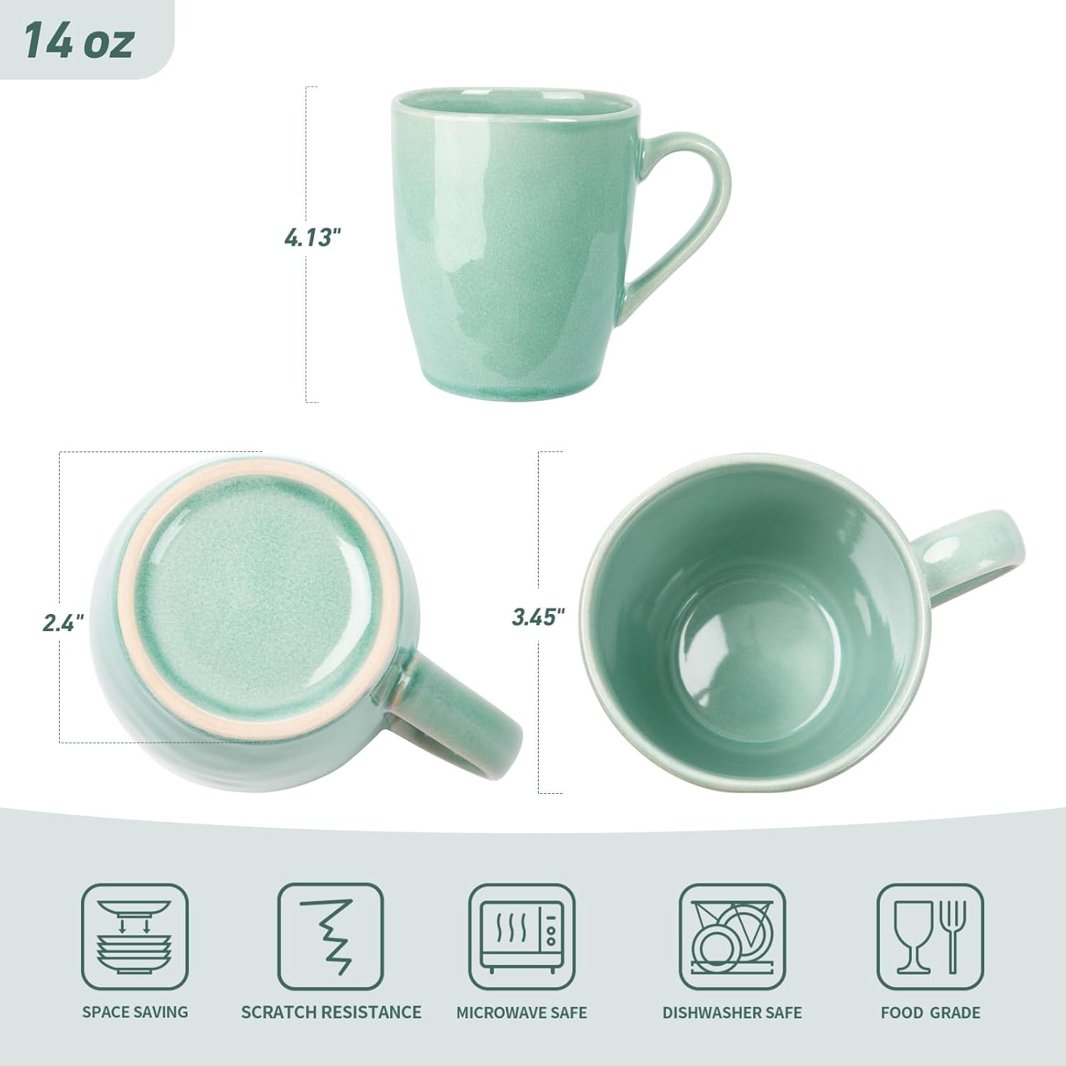 famiware Aurora Coffee Mugs, 14oz Mug Set of 4, Stoneware Mug, Cups for Kitchen, Cappuccino, Latte, Reactive Glaze, Microwave Safe, Scractch-resistant, Mint Green