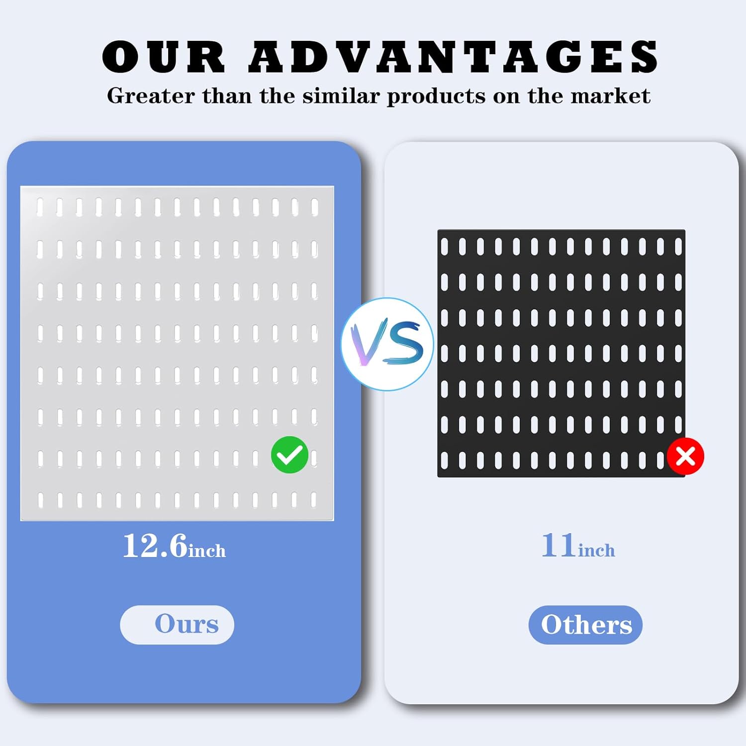 • Including: The pegboard organizer pack includes 4 bigger pegboard panels each with 12.6" x 12.6", 4 containers 3.5’’ x 3’’ x 3.1’’, 2 shelves 12.6’’ x 3.5’’ x 1.2’’, 1 letter holder 7.3’’ x 4.9’’ x 2.2’’, 4 long hooks 2.4’’ x 3.7’’, 5 hooks 1’’ x 2.4’’, and 4 clips 0.8’’ x 3.1’’