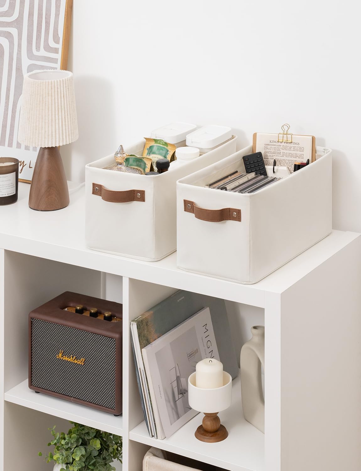 • Premium Materials: The storage basket is crafted from durable, thick fabric and features wide PU leather handles with rivet reinforcement, ensuring both strength and ease of movement to any desired location.