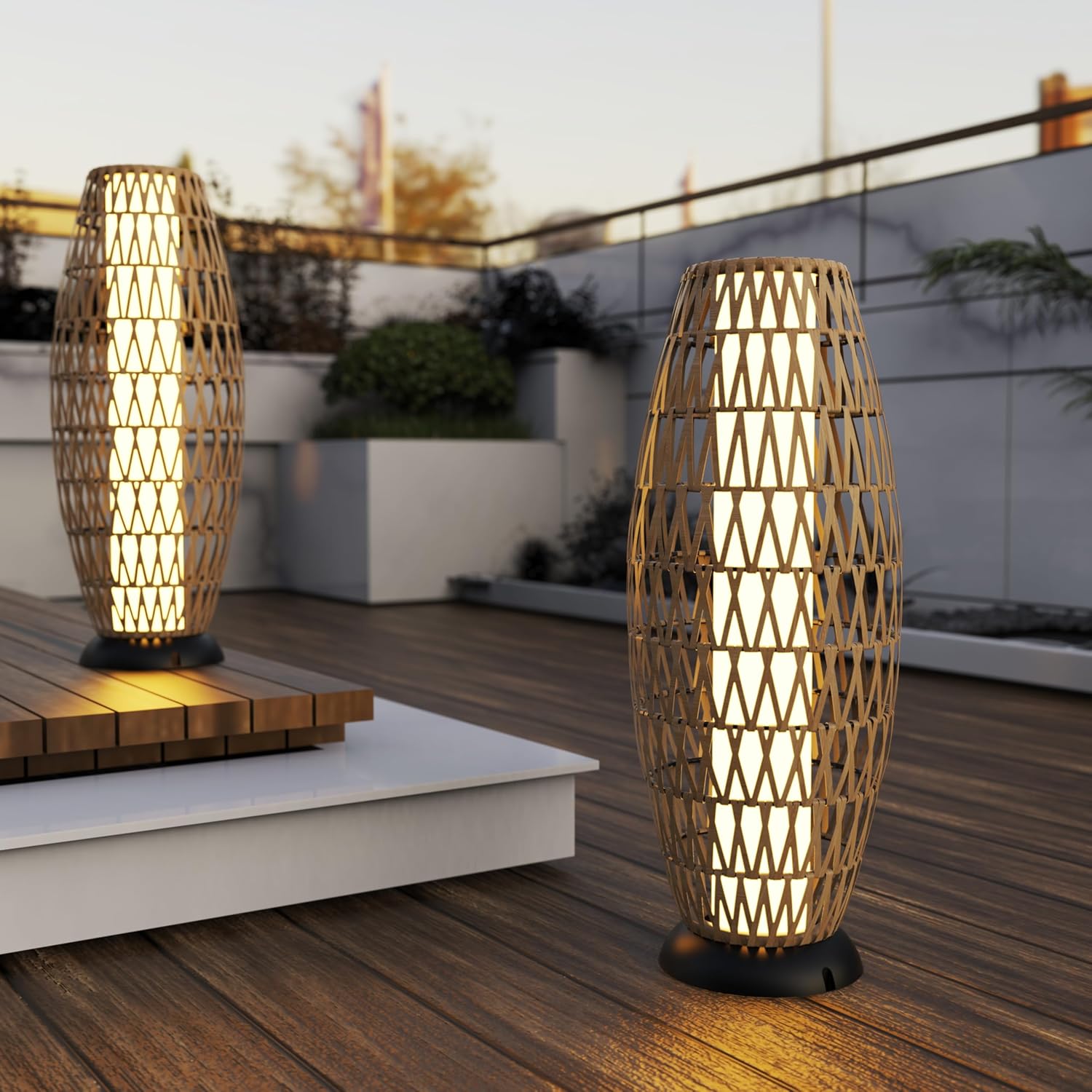 • MODERN DESIGN&WARM NOTICE: Designed with beautiful hand-woven wicker, this natural style lamp will make your patio more unique with aesthetic sense. Putting the lamp under the sunlight for at least 6 hours before using the lamp for the first time. If you have questions about our lamps within 30 days after you receive our lamp, please let us know and we will offer you a satisfactory solution. Better maintenance makes the service life of this lamp becomes longer. Please keep it away from fire.