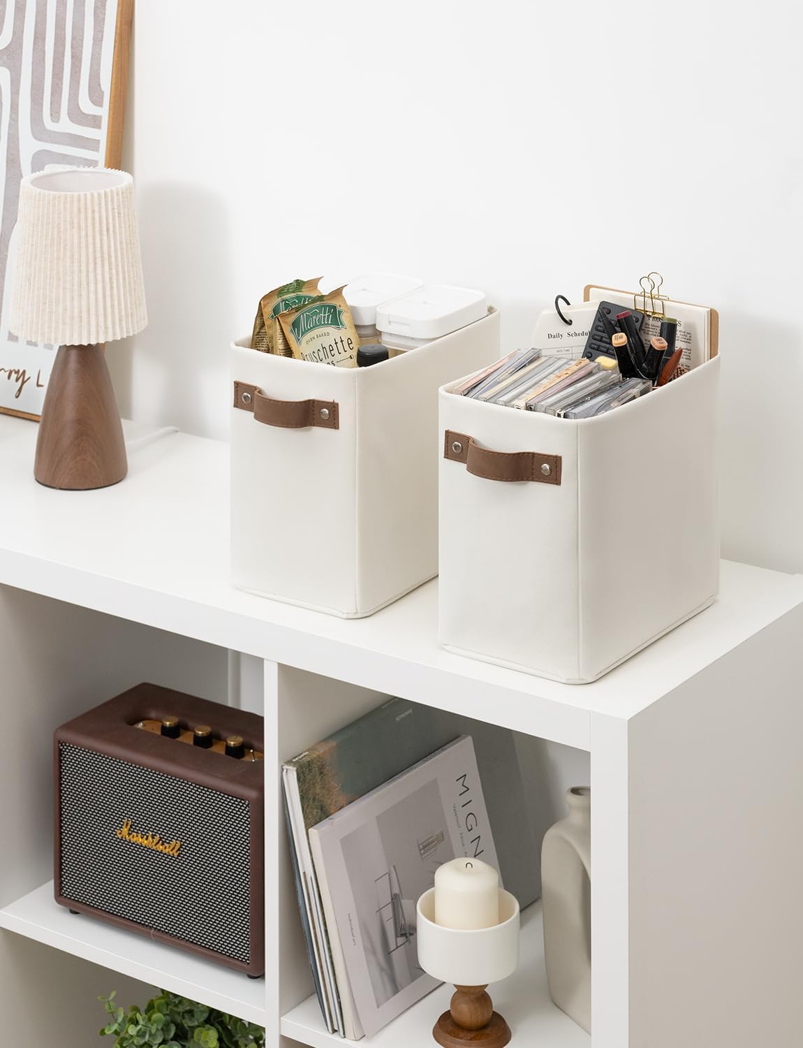 • Premium Materials: The storage basket is crafted from durable, thick fabric and features wide PU leather handles with rivet reinforcement, ensuring both strength and ease of movement to any desired location.