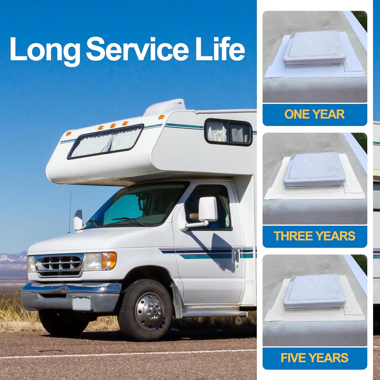 • Professional RV Roof Repair Tape: 6 inches wide, 50 feet long. Ideal for professional RV repairs, it seals roofs, windows, and doors for lasting protection, ensuring worry-free camping in any weather.
