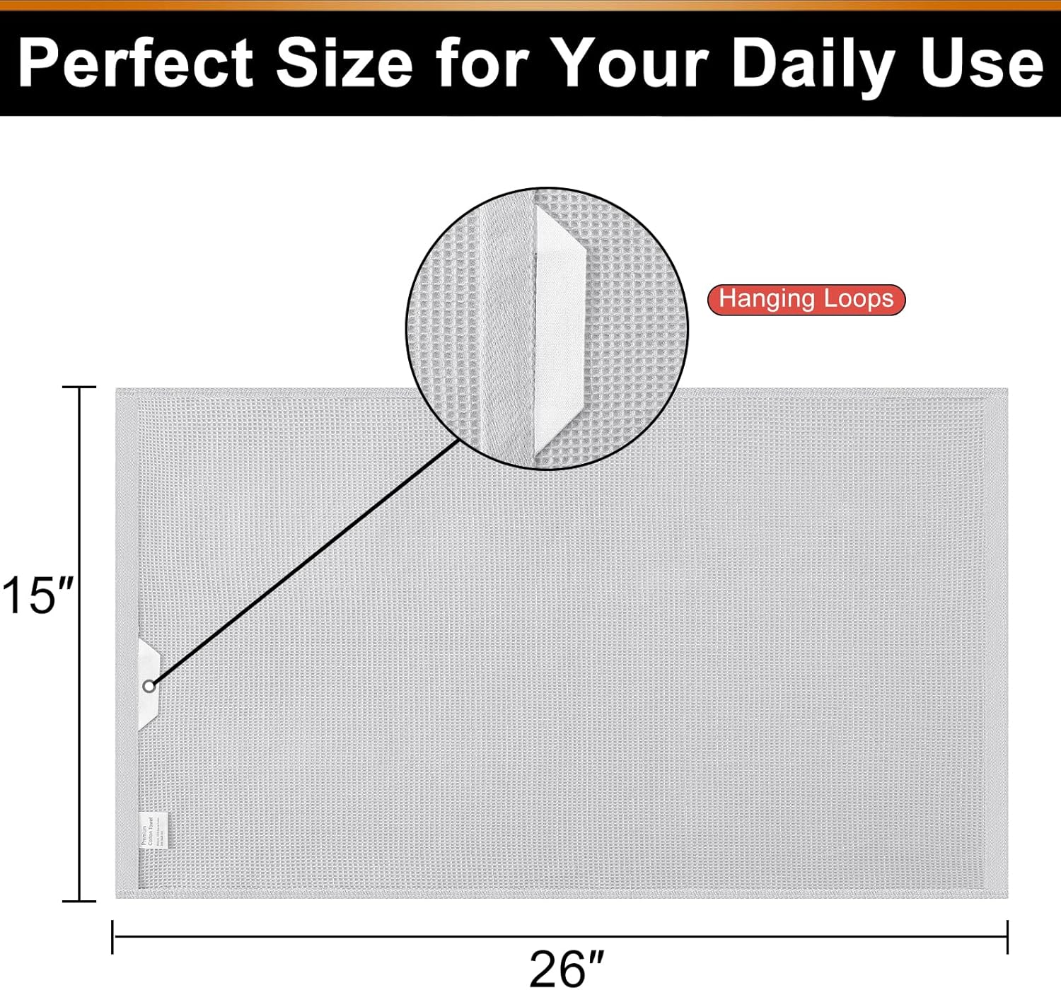 • High Absorbency: The kitchen tea towels feature waffle weave, which makes them compact, long-lasting, and highly absorbent