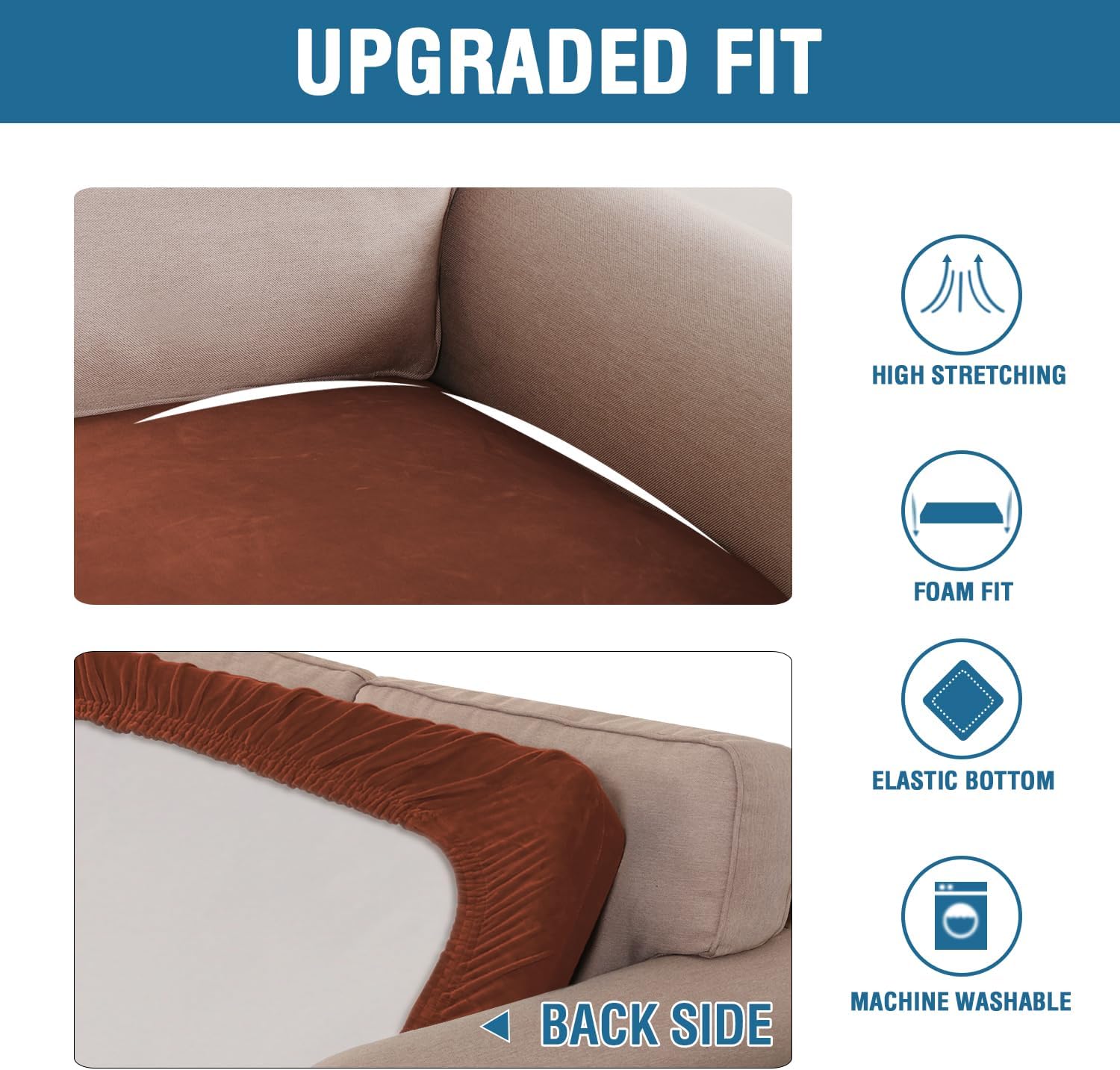 H.VERSAILTEX Velvet Stretch Individual Couch Cushion Cover Plush Slipcover for Loveseat Sofa Furniture Protector Seat Cover (1 Piece Loveseat Cushion Cover, Rust)