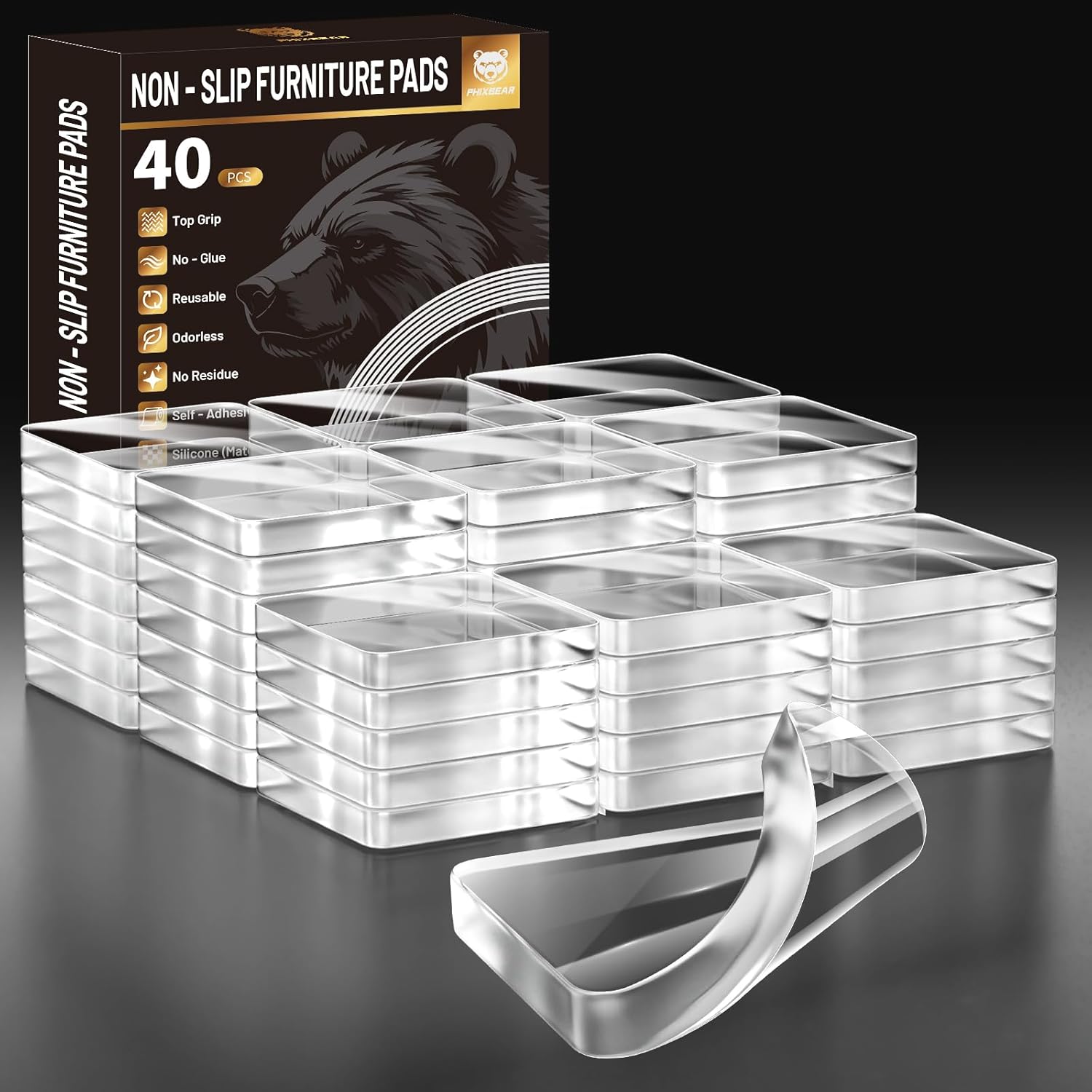 40 PCS Non Slip Furniture Pads, Phixbear Anti Vibration Pads, Reusable Multifunctional Self-Adhesive Silicone Pad, Shockproof and Silent, for Anti-Slip on Tables, Sofas, Beds, and Floor Protection