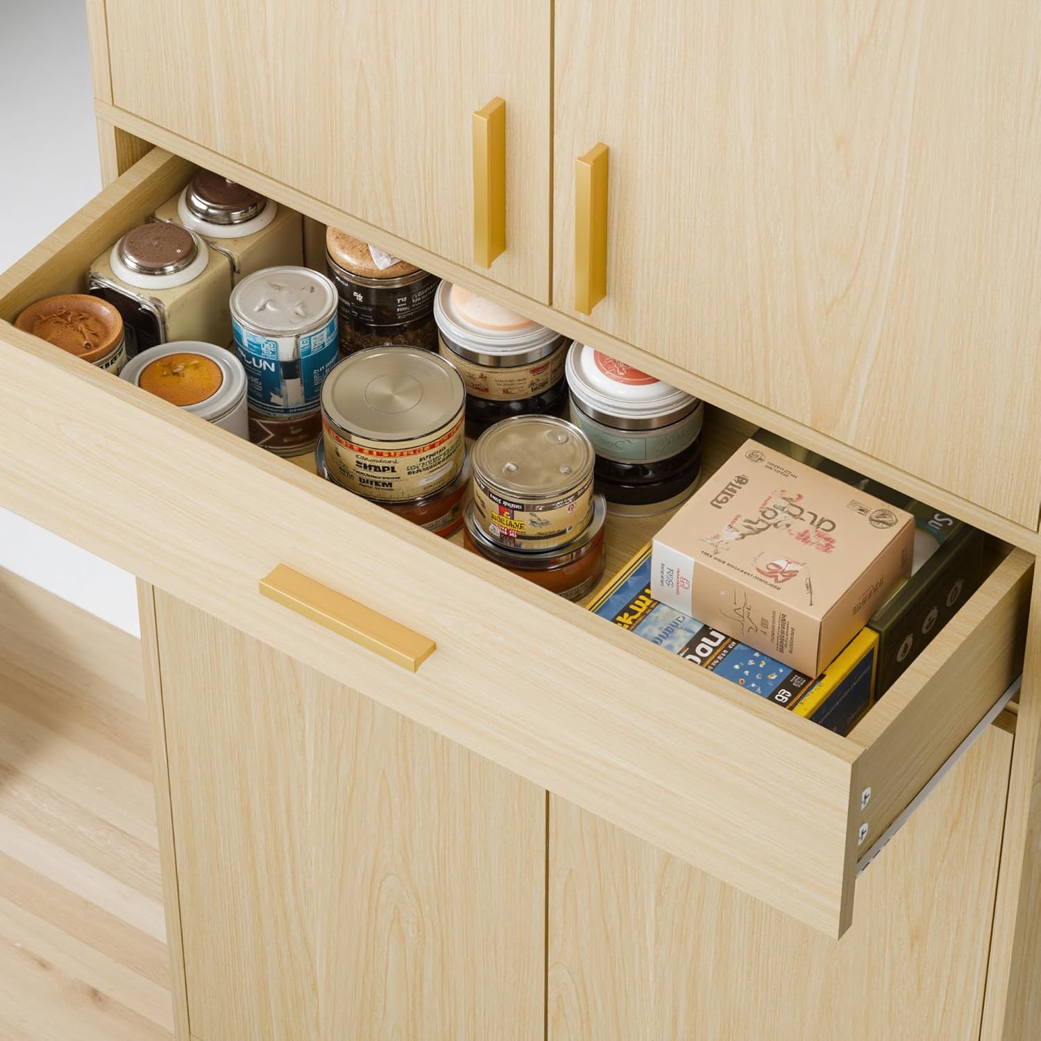 • Stable and Sturdy: Constructed with premium engineered wood and metal, this pantry storage cabinet features a structurally stable; The reinforced shelves in the middle and bottom can hold up to 132 pounds each, while the removable shelves and mid drawer can hold up to 50 pounds; Included anti-tipping kit ensures safe and long-term use
