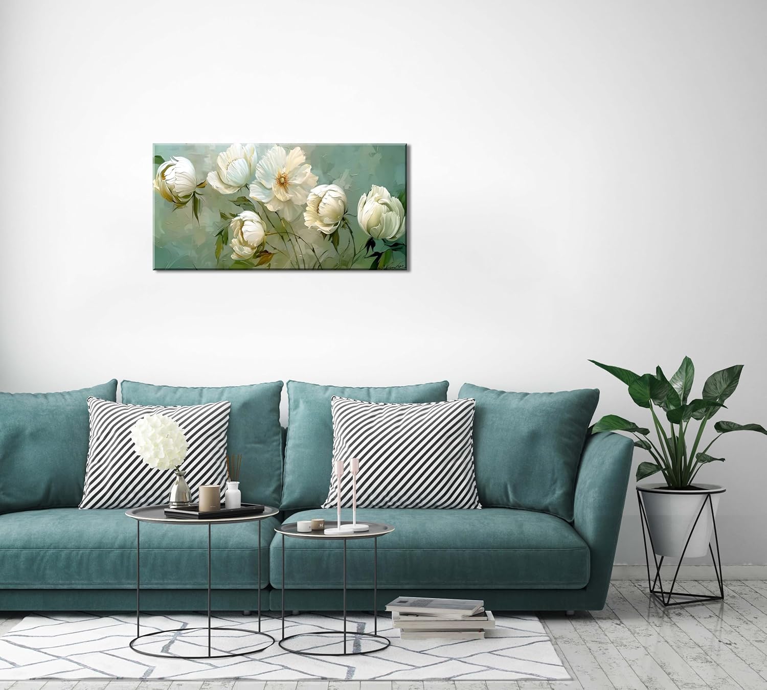 LASMOND Blooming White Flowers Plants Wall Art Decor Artwork for Bedroom (20x40 Inches)