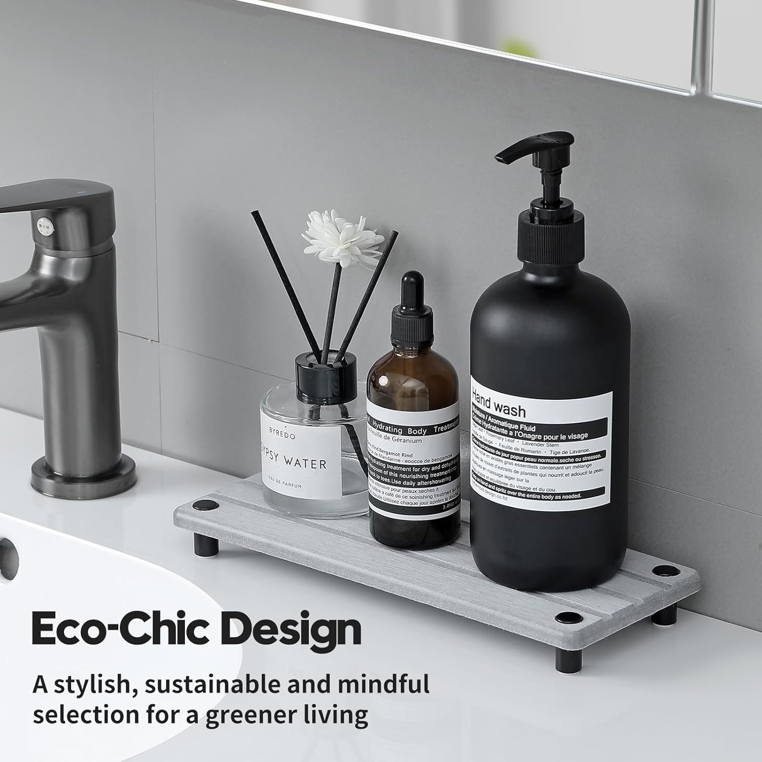 • 【Eco-Chic Design】A minimal and sophisticated look that matches seamlessly with any decor. Modern design with three simple straight lines, perfect for your kitchen or bathroom. You can put it on the table or by the sink countertop