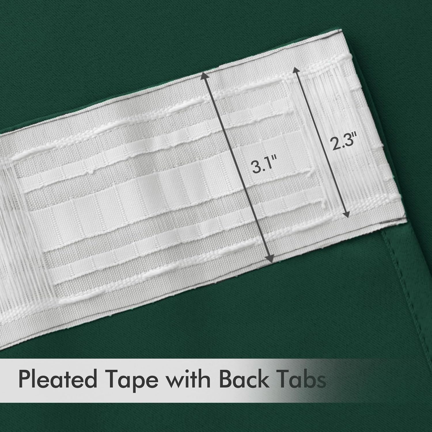 MIULEE Hunter Green Back Tab Blackout Curtains 90 Inches Long 2 Panels Set for Living Room Bedroom, Rod Pocket/Pinch Pleat Thermal Insulated Room Darkening Pleated Light Blocking Drapes