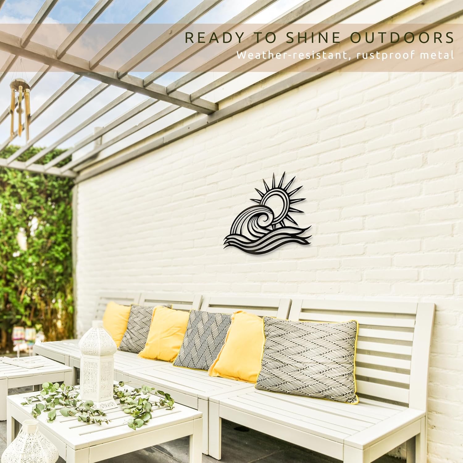 • STYLISH COASTAL DESIGN: Featuring an intricate ocean wave and sun motif, this coastal wall sculpture adds a touch of nautical elegance to any space. Its sleek, modern design complements various decor styles, making it a versatile addition to your home or garden.